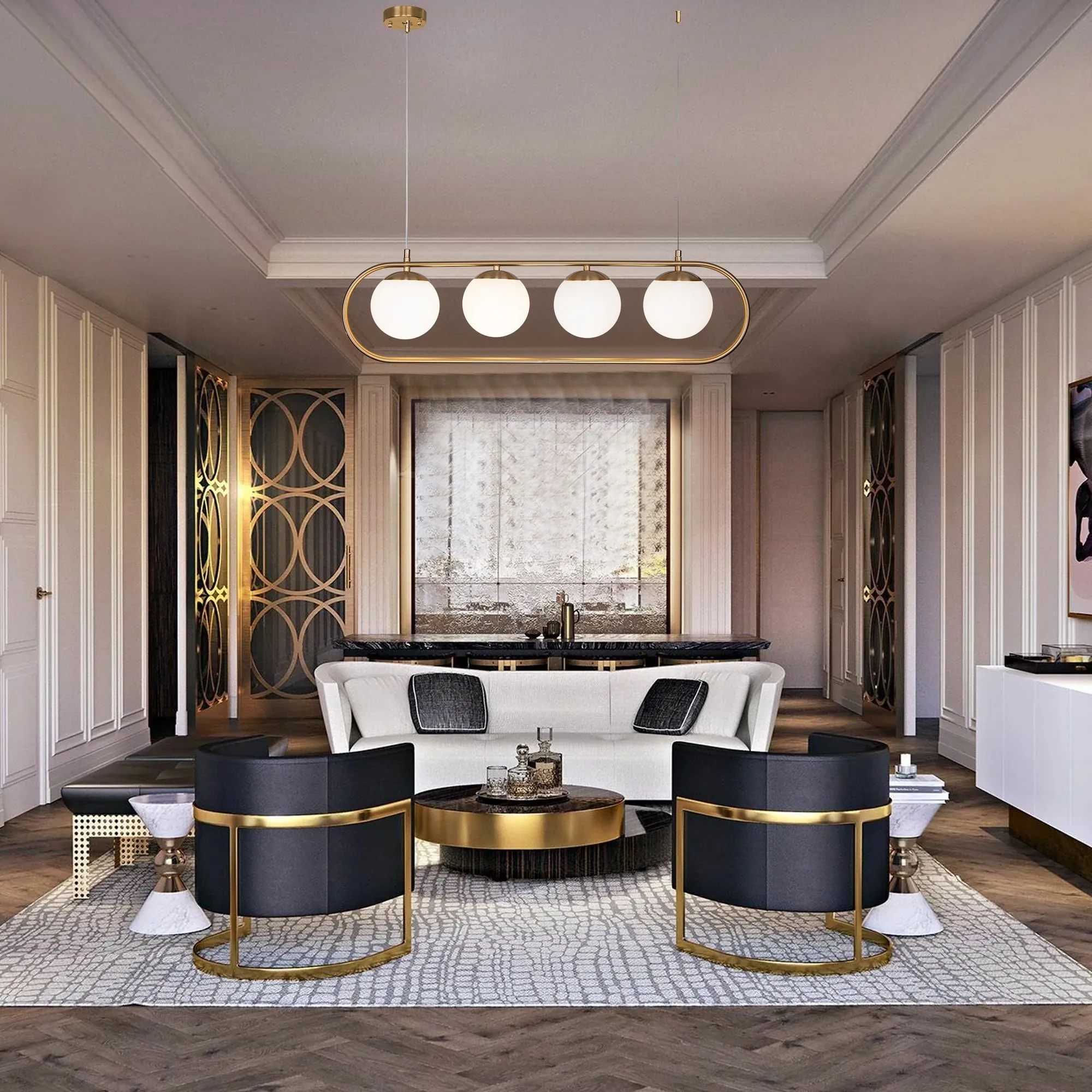 Артикул: 50089/4; Бренд: Eurosvet; Серия: Ringo; Стиль: Modern; Minimalism; Loft; товарная группа: Подвесной светильник; Тип светильника: сменная лампа; Тип светильника по помещению: гостиница;гостиная;загородный дом;кафе;кухня; Срок службы, г: 8; Тип крепления: планка; Степень защиты: IP20; Питание: 230 В, 50 Гц; Площадь освещения, м2: 16; Класс электро-безопасности: I; Температурный режим: от -10 до +40; Коэффициент пульсации, %: < 5; Тип ламп: металл; Тип цоколя: E27; Материал: металл;стекло; Материал плафона: стекло, Стекло; Цвет: белый;золото; Цвет каркаса: золото, Золото; Цвет плафона: белый, Белый; Умный дом: совместим с умным реле;совместим с умным выключателем; Гарантия, мес: 12; Длина, мм: 780; Ширина, мм: 130; Min высота, мм: 260; max высота: 1200; Диаметр потолочной чаши, мм: 100; Высота встраиваемой части, мм: 60; Вес упаковки, кг: 2.324; Длина упаковки, см: 80.1; Ширина упаковки, см: 25.7; Высота упаковки, см: 28.8; Объем упаковки, м3: 0.05928682; Штрихкод: 4690389071850