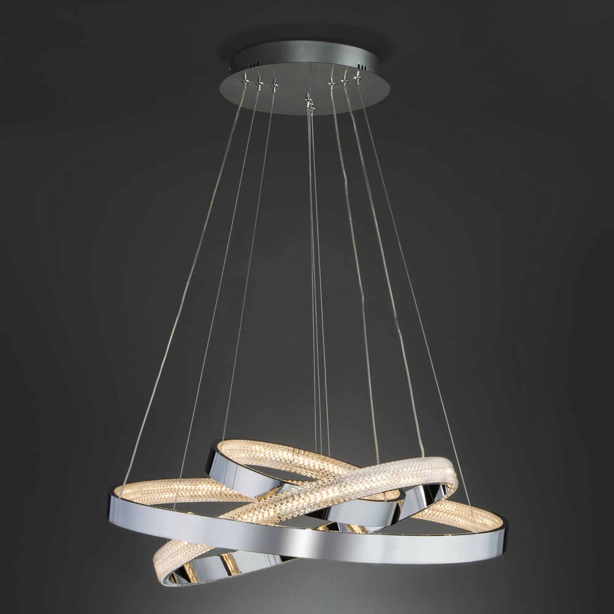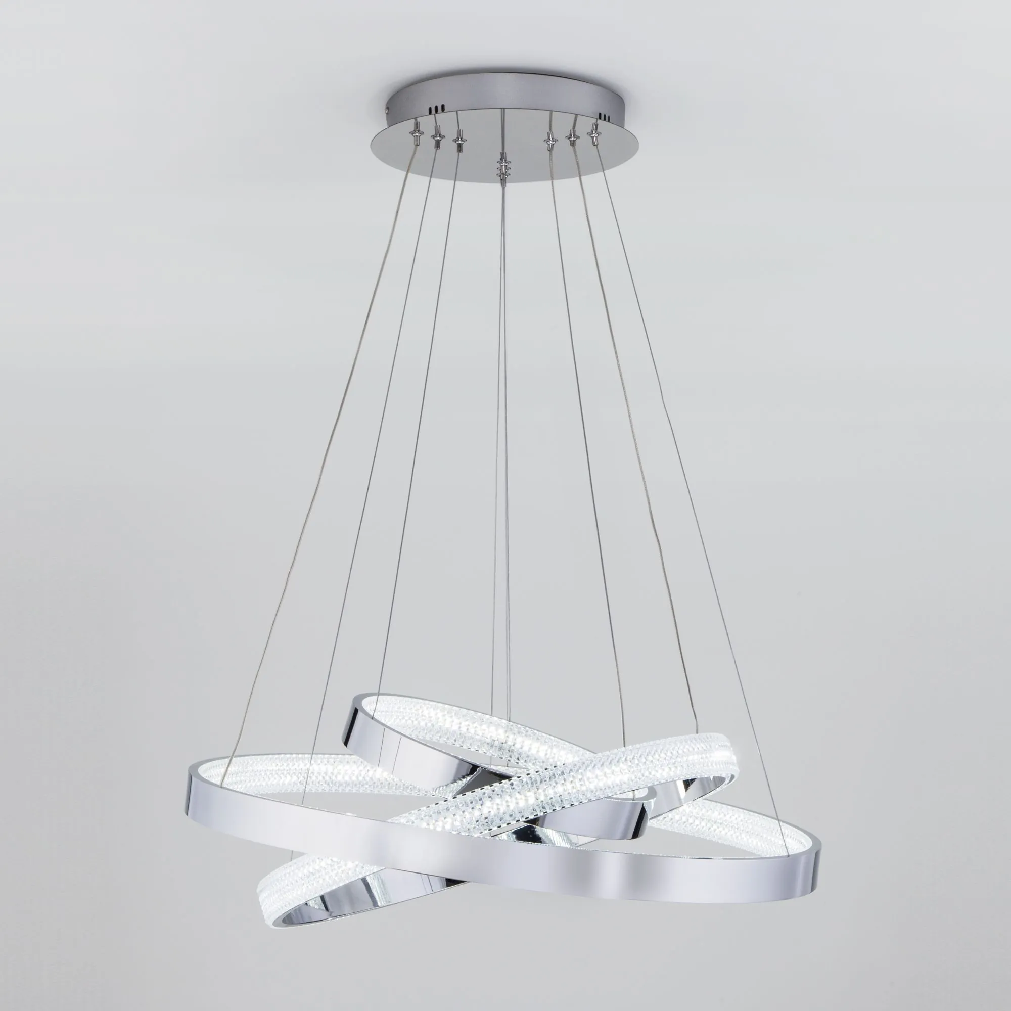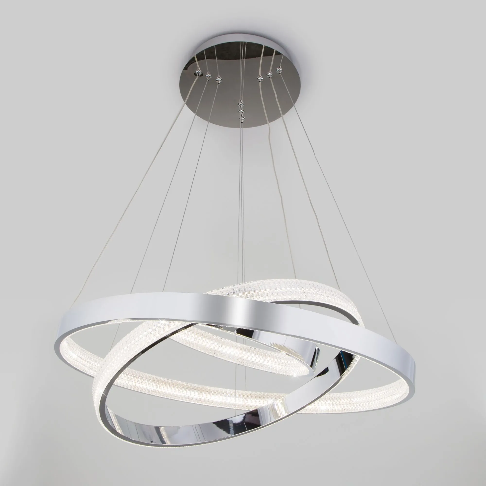 Артикул: 90176/3; Бренд: Eurosvet; Серия: Posh; Стиль: High-tech; Minimalism; Функционализм; товарная группа: Подвесной светильник; Тип светильника: встроенные LED; Тип светильника по помещению: гостиная;гостиница;загородный дом;кафе;спальня;прихожая/коридор; Срок службы, г: 6; Тип крепления: планка; Степень защиты: IP20; Общая мощность, W: 80; Питание: 230 В, 50 Гц; Площадь освещения, м2: 10; Класс электро-безопасности: I; Температурный режим: -10 ... +40; Коэффициент пульсации, %: < 5; Кол-во светодиодов: 400; Тип ламп: металл; Тип светодиодов: светодиодная лента; Световой поток, Lm: 4000; Цветовая температура, K: 3300;4200;6500; Индекс цветопередачи: > 80; Срок службы светодиодов, ч: 50000; Материал: металл;хрусталь; Цвет: хром; Цвет каркаса: хром, Хром; Гарантия, мес: 60; Длина, мм: 630; Ширина, мм: 630; Min высота, мм: 600; max высота: 1130; Диаметр потолочной чаши, мм: 280; Вес упаковки, кг: 4.286; Длина упаковки, см: 65.4; Ширина упаковки, см: 65.4; Высота упаковки, см: 13; Объем упаковки, м3: 0.05560308; Штрихкод: 4690389144653