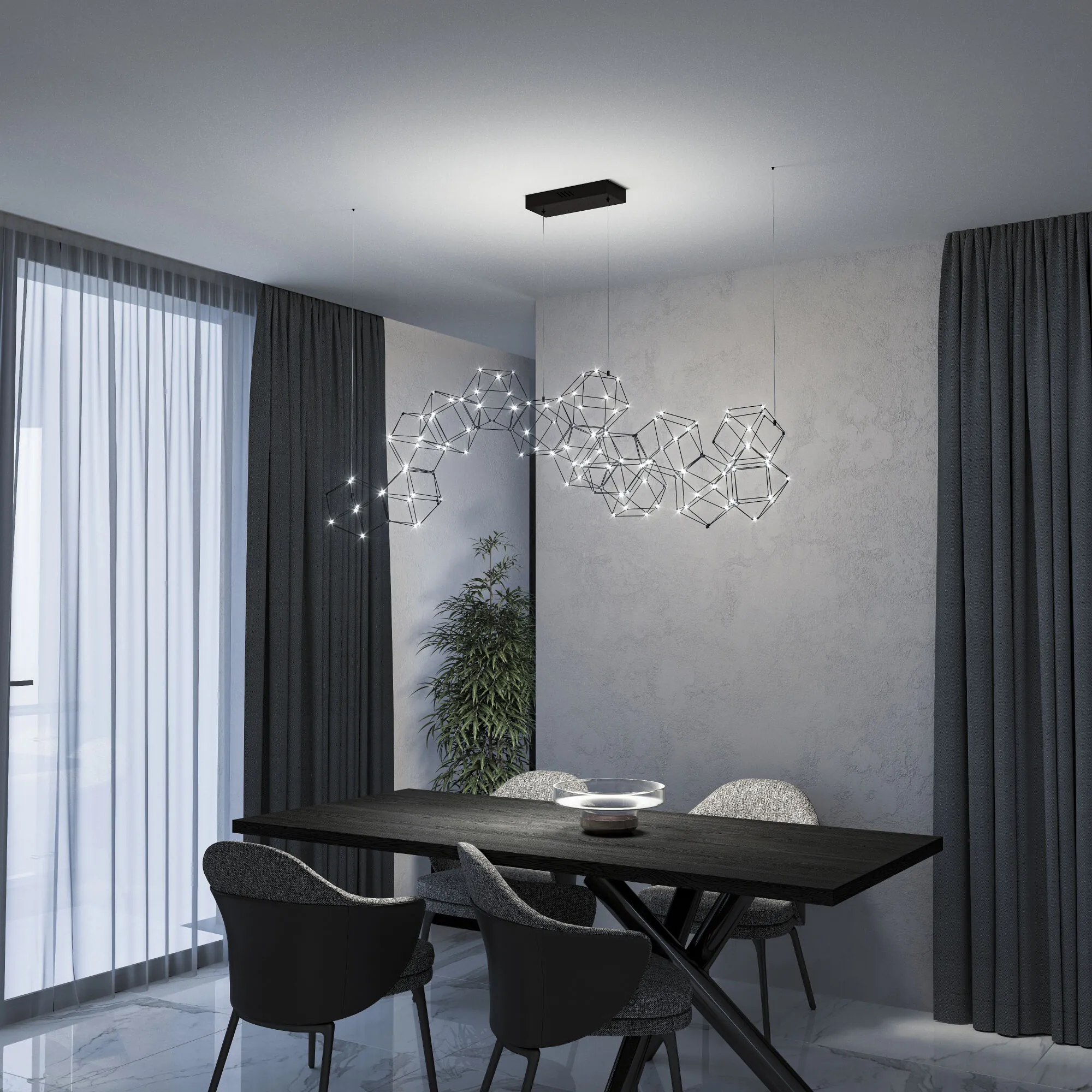 Артикул: 90168/14; Бренд: Eurosvet; Серия: Uma; Стиль: Art Deco; товарная группа: подвесной акцентный светильник; Тип светильника: встроенные LED; Тип светильника по помещению: гостиница;гостиная;загородный дом;офис;кабинет;кафе;кухня;спальня; Срок службы, г: 6; Тип крепления: планка; Степень защиты: IP20; Общая мощность, W: 59; Питание: 230 В, 50 Гц; Площадь освещения, м2: 8; Класс электро-безопасности: I; Температурный режим: -10 ... +40; Коэффициент пульсации, %: < 5; Кол-во светодиодов: 168; Тип ламп: металл; Тип светодиодов: светодиодная плата;SMD; Световой поток, Lm: 3310; Цветовая температура, K: 4000; Индекс цветопередачи: > 80; Срок службы светодиодов, ч: 50000; Материал: Металл; Материал плафона: металл, Металл; Цвет: чёрный жемчуг; Цвет каркаса: Черный жемчуг, чёрный жемчуг, черный жемчуг; Цвет плафона: чёрный жемчуг, черный жемчуг; Умный дом: совместим с умным выключателем;совместим с умным реле; Гарантия, мес: 60; Длина, мм: 1670; Ширина, мм: 540; Min высота, мм: 600; max высота: 1200; Вес упаковки, кг: 13.72; Длина упаковки, см: 176; Ширина упаковки, см: 54; Высота упаковки, см: 64; Объем упаковки, м3: 0.60825600; Штрихкод: 4690389188398