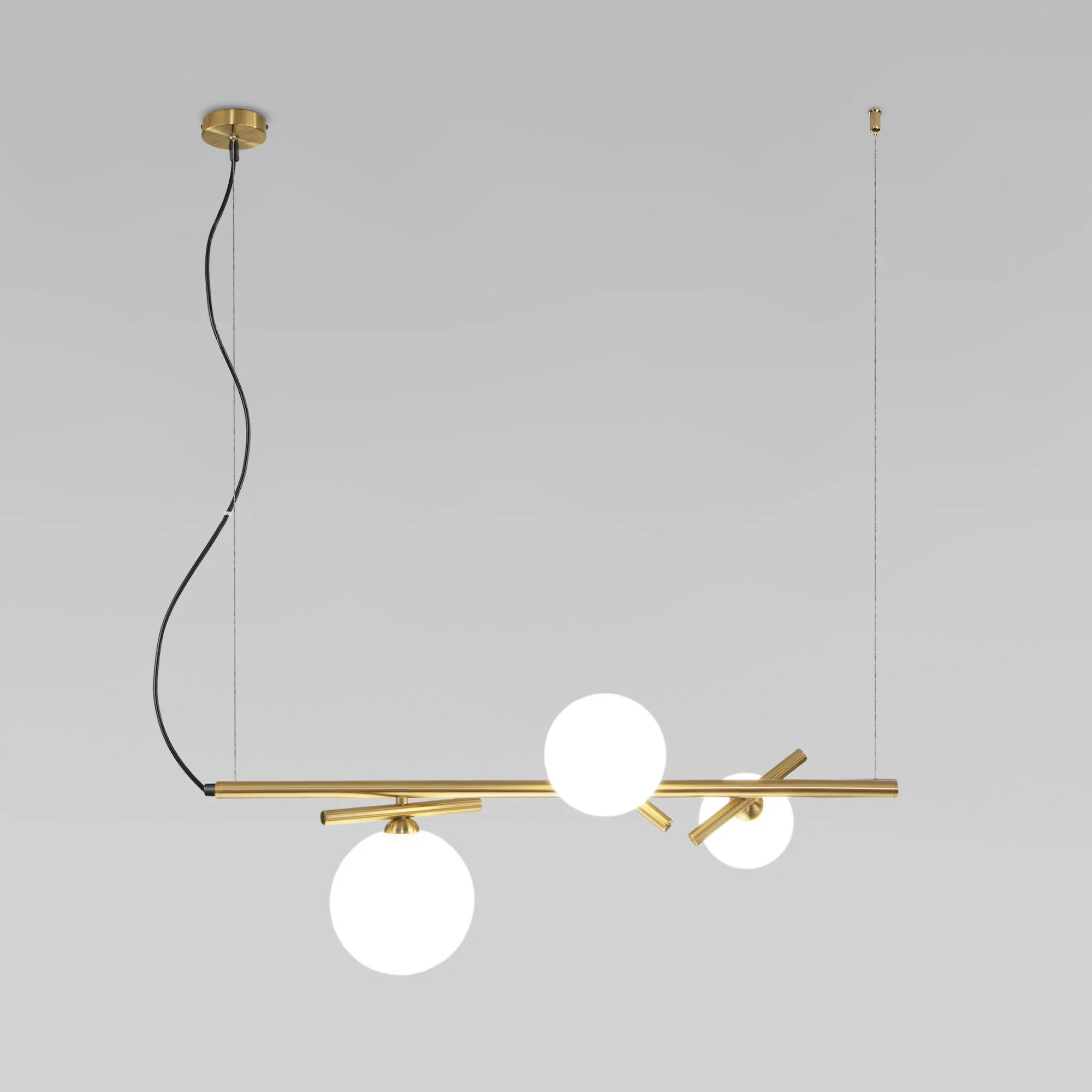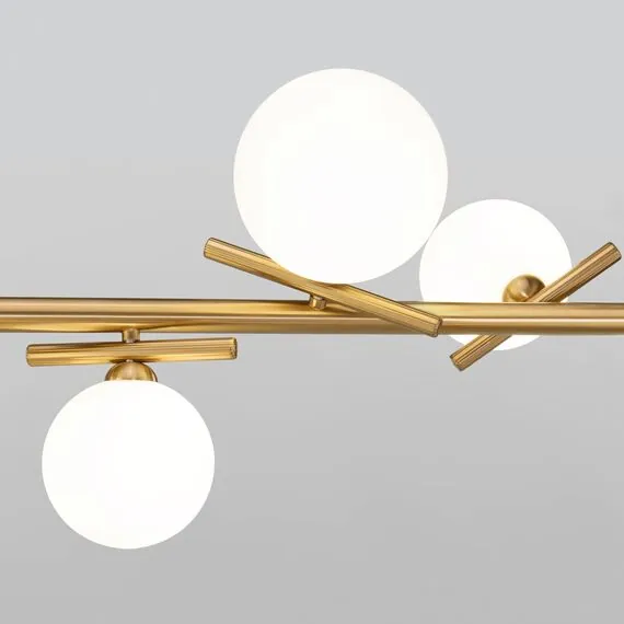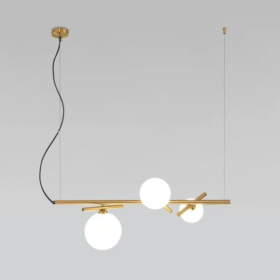 Артикул: 50382/3; Бренд: Eurosvet; Серия: Salut; Стиль: Minimalism; Контемпорари; товарная группа: Подвесной светильник; Тип светильника: сменная лампа; Тип светильника по помещению: гостиная; Срок службы, г: 8; Степень защиты: IP20; Питание: 230 В, 50 Гц; Площадь освещения, м2: 4; Класс электро-безопасности: I; Температурный режим: -10 ... +40; Тип ламп: металл; Тип цоколя: G9; Материал: металл;стекло; Материал плафона: стекло, Стекло; Цвет: латунь;белый; Цвет каркаса: латунь, Латунь; Цвет плафона: белый, Белый; Умный дом: совместим с умным выключателем;совместим с умным реле; Гарантия, мес: 12; Длина, мм: 730; Ширина, мм: 270; Min высота, мм: 350; max высота: 1320; Высота встраиваемой части, мм: 25; Вес упаковки, кг: 2.095; Длина упаковки, см: 74.2; Ширина упаковки, см: 21.8; Высота упаковки, см: 27.5; Объем упаковки, м3: 0.04448290; Штрихкод: 4690389191626