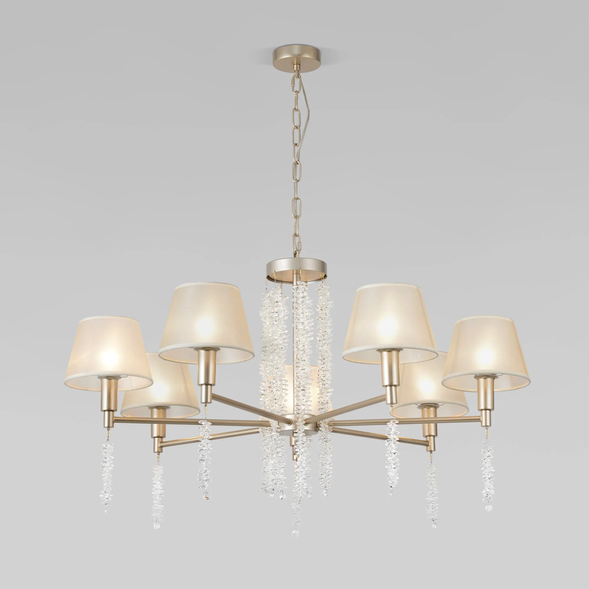 Артикул: 60148/7; Бренд: Eurosvet; Серия: Charuel; Стиль: Classic; товарная группа: Подвесной светильник; Тип светильника: сменная лампа; Тип светильника по помещению: спальня;гостиная; Срок службы, г: 6; Тип крепления: планка; Степень защиты: IP20; Питание: 230 В, 50 Гц; Площадь освещения, м2: 13; Класс электро-безопасности: I; Температурный режим: -10 ... +40; Тип ламп: металл; Тип цоколя: E14; Материал: металл;ткань; Материал плафона: ткань; Цвет: золото; Цвет каркаса: золото, Золото; Цвет плафона: бежевый, Бежевый; Умный дом: совместим с умным выключателем;совместим с умным реле; Гарантия, мес: 12; Длина, мм: 890; Ширина, мм: 890; Min высота, мм: 600; max высота: 900; Диаметр потолочной чаши, мм: 100; Высота встраиваемой части, мм: 40; Вес упаковки, кг: 4.523; Длина упаковки, см: 39.3; Ширина упаковки, см: 20; Высота упаковки, см: 28.3; Объем упаковки, м3: 0.02224380; Штрихкод: 4690389201196