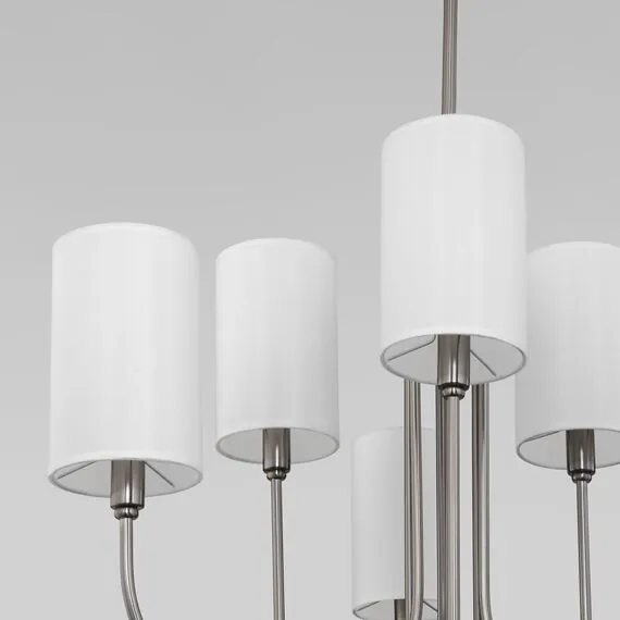 Артикул: 60164/6; Бренд: Eurosvet; Серия: Abbey; Стиль: Classic; товарная группа: Подвесной светильник; Тип светильника: сменная лампа; Тип светильника по помещению: гостиная; Срок службы, г: 6; Тип крепления: планка; Степень защиты: IP20; Питание: 230 В, 50 Гц; Площадь освещения, м2: 11; Класс электро-безопасности: I; Температурный режим: -10 ... +40; Тип ламп: металл; Тип цоколя: E14; Материал: металл;ткань; Материал плафона: ткань; Цвет: никель;белый; Цвет каркаса: никель, Никель; Цвет плафона: белый, Белый; Умный дом: совместим с умным выключателем;совместим с умным реле; Гарантия, мес: 12; Длина, мм: 640; Ширина, мм: 640; Min высота, мм: 960; max высота: 1390; Высота встраиваемой части, мм: 40; Вес упаковки, кг: 3.402; Длина упаковки, см: 55.4; Ширина упаковки, см: 38.7; Высота упаковки, см: 23; Объем упаковки, м3: 0.04931154; Штрихкод: 4690389203206