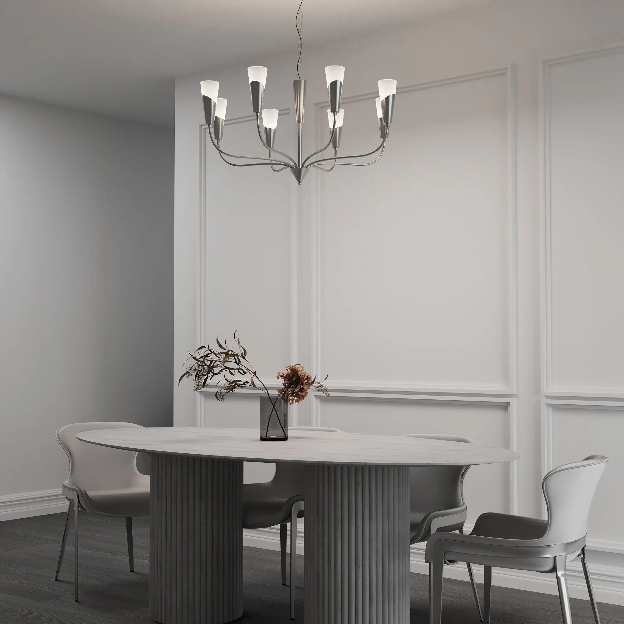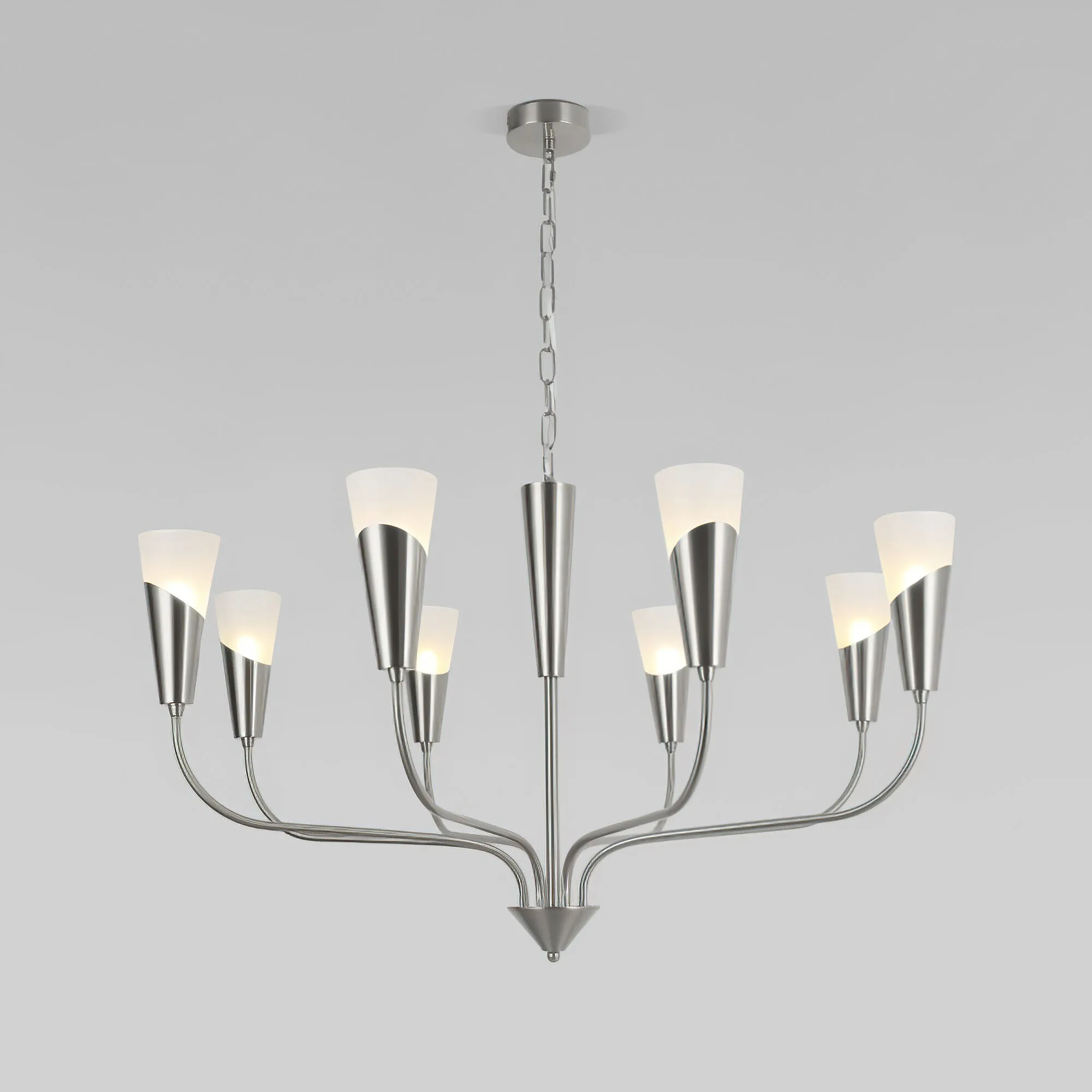 Артикул: 60167/8; Бренд: Eurosvet; Серия: Rhyton; Стиль: Art Deco; товарная группа: Подвесной светильник; Тип светильника: сменная лампа; Тип светильника по помещению: кухня;спальня;загородный дом;гостиная; Срок службы, г: 8; Степень защиты: IP20; Питание: 230 В, 50 Гц; Площадь освещения, м2: 15; Класс электро-безопасности: I; Температурный режим: -10 ... +40; Коэффициент пульсации, %: < 5; Тип ламп: металл; Тип цоколя: E14; Материал: металл;стекло; Материал плафона: стекло, Стекло; Цвет: никель;белый; Цвет плафона: белый, Белый; Умный дом: совместим с умным выключателем;совместим с умным реле; Гарантия, мес: 12; Длина, мм: 900; Ширина, мм: 900; Min высота, мм: 530; max высота: 850; Высота встраиваемой части, мм: 60; Вес упаковки, кг: 3.9; Длина упаковки, см: 48; Ширина упаковки, см: 26; Высота упаковки, см: 30; Объем упаковки, м3: 0.03744000; Штрихкод: 4690389208805