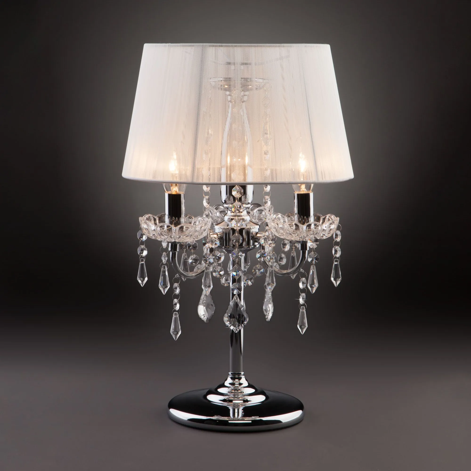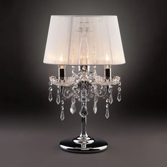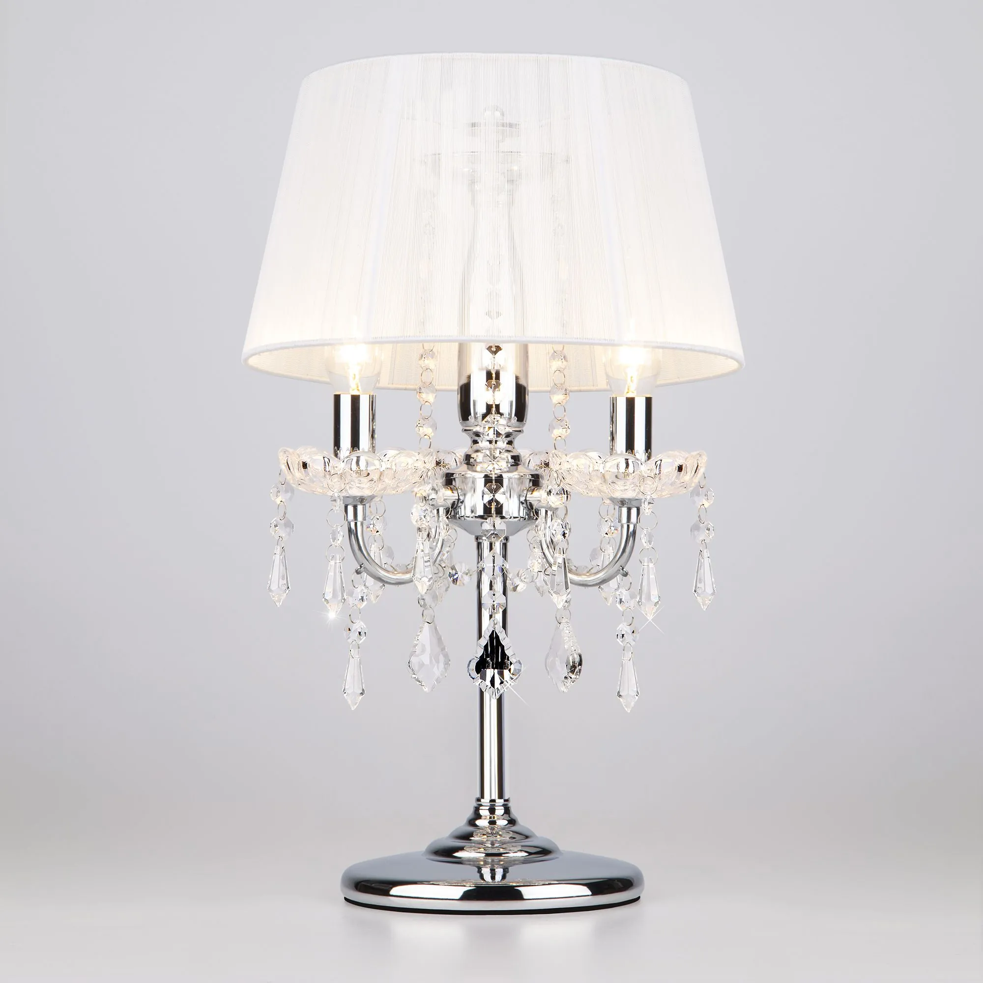 Артикул: 2045/3T; Бренд: Eurosvet; Серия: Allata; Стиль: Classic; Английский; товарная группа: настольный светильник; Тип светильника: сменная лампа; Тип светильника по помещению: гостиная;спальня; Срок службы, г: 8; Степень защиты: IP20; Питание: 230 В, 50 Гц; Площадь освещения, м2: 10; Класс электро-безопасности: II; Температурный режим: -10 ... +40; Тип ламп: металл; Тип цоколя: E14; Материал: металл;хрусталь; Материал плафона: нить; Цвет: хром;белый; Цвет каркаса: хром, Хром; Цвет плафона: белый, Белый; Умный дом: совместим с умной розеткой; Гарантия, мес: 12; Длина, мм: 300; Ширина, мм: 300; высота: 480; Высота встраиваемой части, мм: 40; Длина кабеля, м: 1.75; Вес упаковки, кг: 2.762; Длина упаковки, см: 30; Ширина упаковки, см: 30; Высота упаковки, см: 65; Объем упаковки, м3: 0.03631536; Штрихкод: 4690389016189