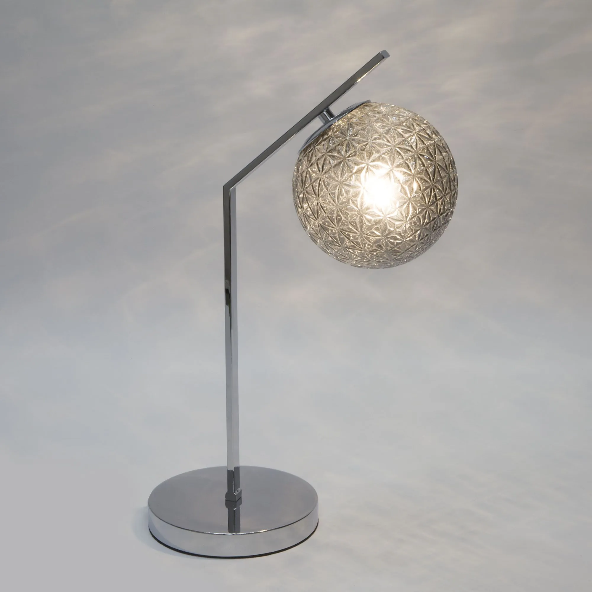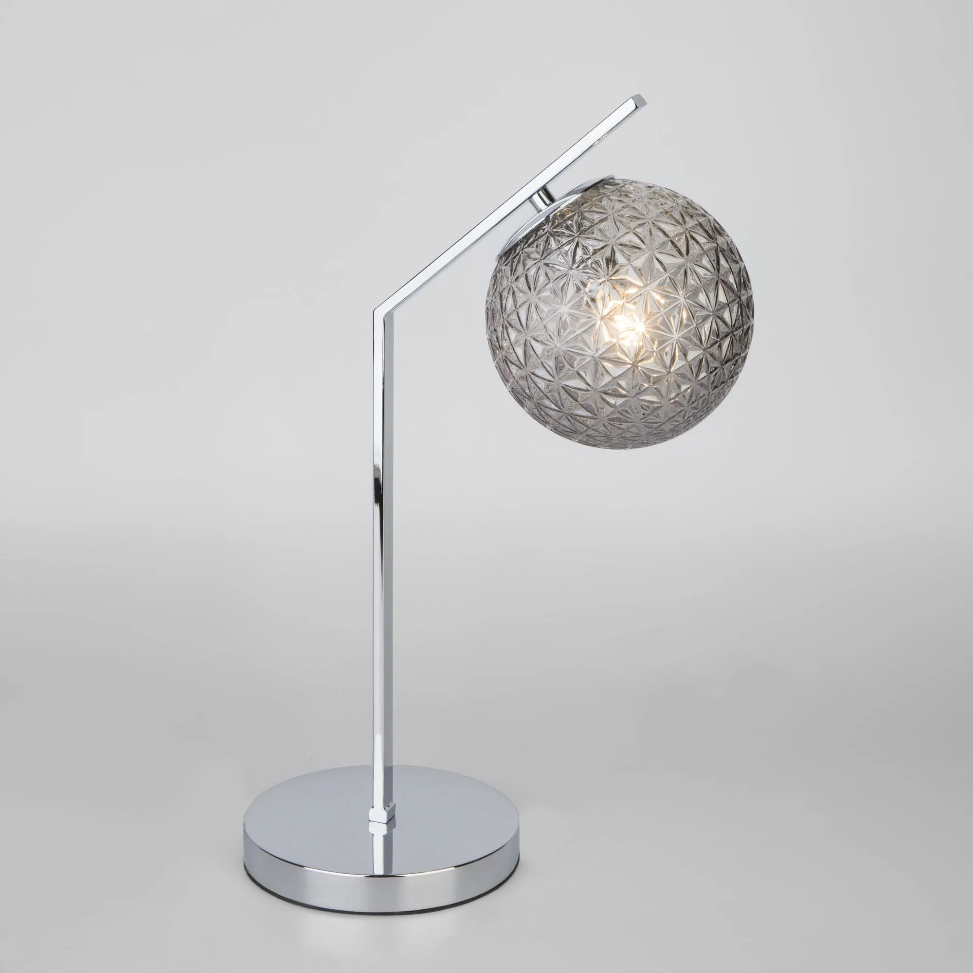 Артикул: 01213/1; Бренд: Eurosvet; Серия: Shape; Стиль: Art Deco; товарная группа: настольный светильник; Тип светильника: сменная лампа; Тип светильника по помещению: гостиная;спальня;кабинет;гостиница; Срок службы, г: 8; Степень защиты: IP20; Питание: 230 В, 50 Гц; Площадь освещения, м2: 3; Тип ламп: металл; Тип цоколя: E14; Материал: металл;стекло; Материал плафона: стекло, Стекло; Цвет: дымчатый;хром; Цвет каркаса: хром, Хром; Цвет плафона: дымчатый, Дымчатый; Умный дом: совместим с умной розеткой; Гарантия, мес: 12; Длина, мм: 155; Ширина, мм: 328; высота: 496; Высота встраиваемой части, мм: 60; Вес упаковки, кг: 3.349; Длина упаковки, см: 56.3; Ширина упаковки, см: 35.9; Высота упаковки, см: 24.6; Объем упаковки, м3: 0.04972078; Штрихкод: 4690389175695