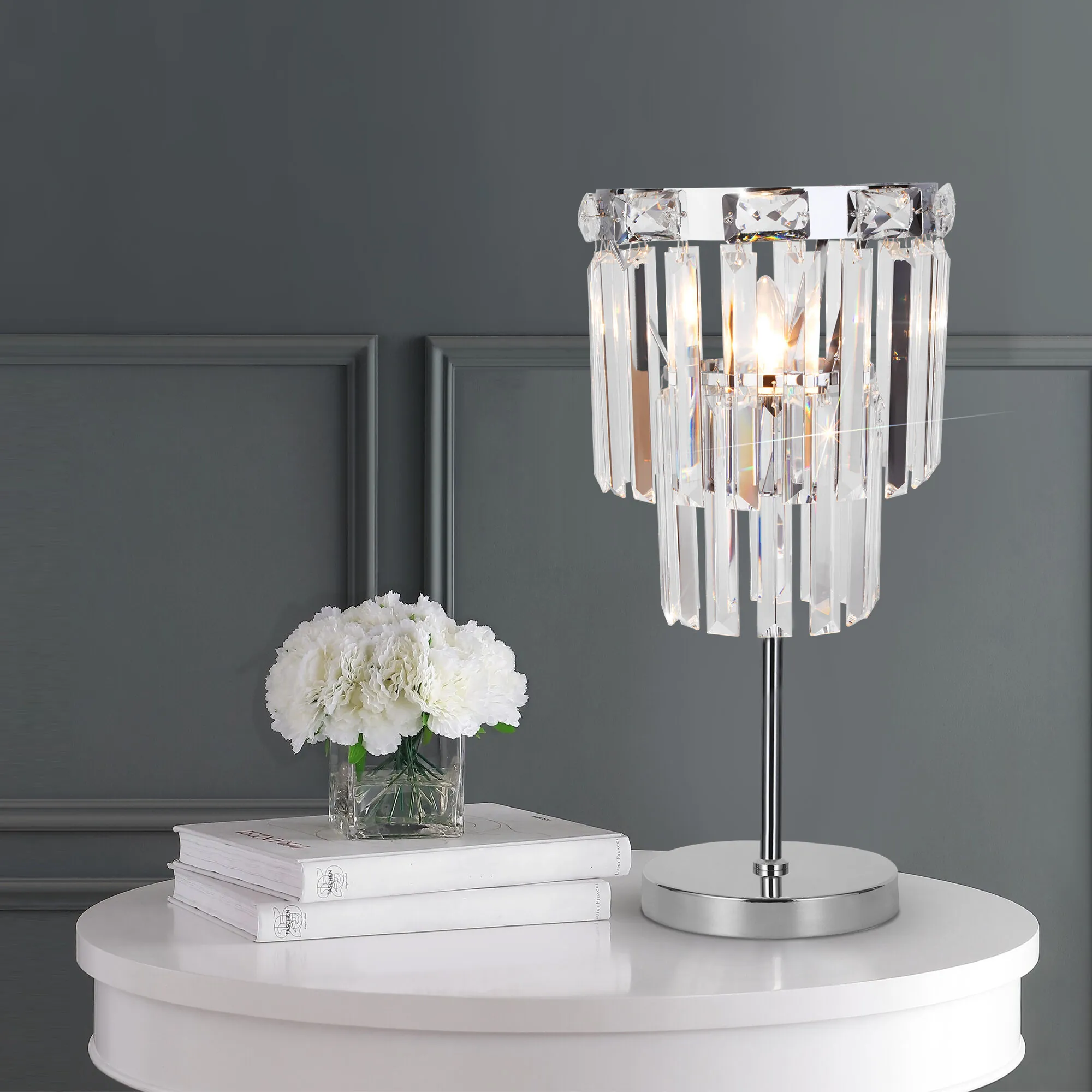 Артикул: 01136/1; Бренд: Eurosvet; Серия: Elegante; Стиль: классика; товарная группа: настольный светильник; Тип светильника: сменная лампа; Тип светильника по помещению: гостиная;гостиница;кабинет;спальня; Срок службы, г: 8; Степень защиты: IP20; Питание: 230 В, 50 Гц; Площадь освещения, м2: 2; Класс электро-безопасности: II; Температурный режим: -10 ... +40; Тип ламп: металл; Тип цоколя: E14; Материал: хрусталь;металл; Материал плафона: хрусталь; Цвет: хром; Цвет каркаса: хром, Хром; Цвет плафона: прозрачный, Прозрачный; Умный дом: совместим с умной розеткой; Гарантия, мес: 12; Длина, мм: 200; Ширина, мм: 200; высота: 450; Высота встраиваемой части, мм: 60; Вес упаковки, кг: 4.139; Длина упаковки, см: 22.5; Ширина упаковки, см: 22.4; Высота упаковки, см: 50.2; Объем упаковки, м3: 0.02530080; Штрихкод: 4690389186981