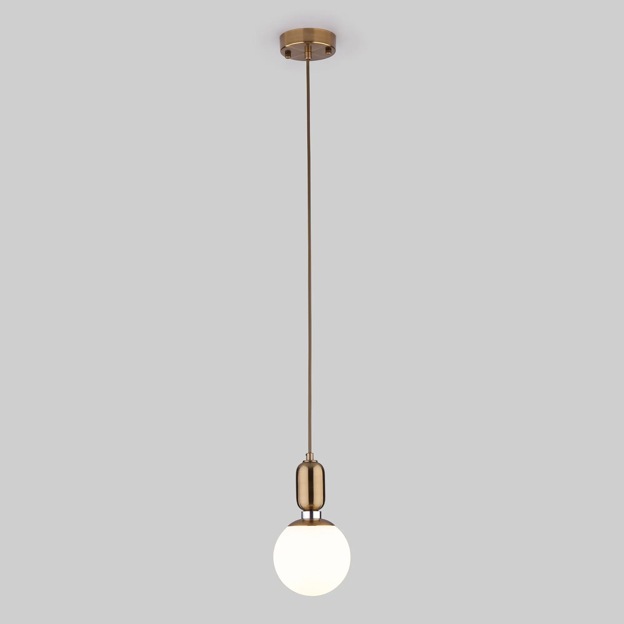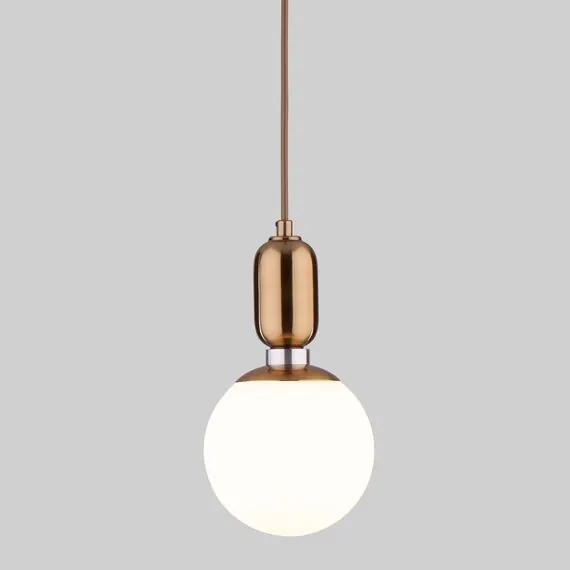 Артикул: 50151/1; Бренд: Eurosvet; Серия: Bubble; Стиль: Art Deco; товарная группа: подвесной акцентный светильник; Тип светильника: сменная лампа; Тип светильника по помещению: гостиная;гостиница;загородный дом;кафе;кухня;спальня; Срок службы, г: 8; Тип крепления: планка; Степень защиты: IP20; Питание: 230 В, 50 Гц; Площадь освещения, м2: 4; Класс электро-безопасности: I; Температурный режим: -10 ... +40; Коэффициент пульсации, %: < 5; Тип ламп: металл; Тип цоколя: E27; Материал: металл;стекло; Материал плафона: стекло, Стекло; Цвет: белый;латунь; Цвет каркаса: латунь, Латунь; Цвет плафона: белый, Белый; Умный дом: совместим с умным реле;совместим с умным выключателем; Гарантия, мес: 12; Длина, мм: 130; Ширина, мм: 130; Min высота, мм: 700; max высота: 1000; Высота встраиваемой части, мм: 60; Вес упаковки, кг: 0.731; Длина упаковки, см: 25.4; Ширина упаковки, см: 18.8; Высота упаковки, см: 19.9; Объем упаковки, м3: 0.00950265; Штрихкод: 4690389132247