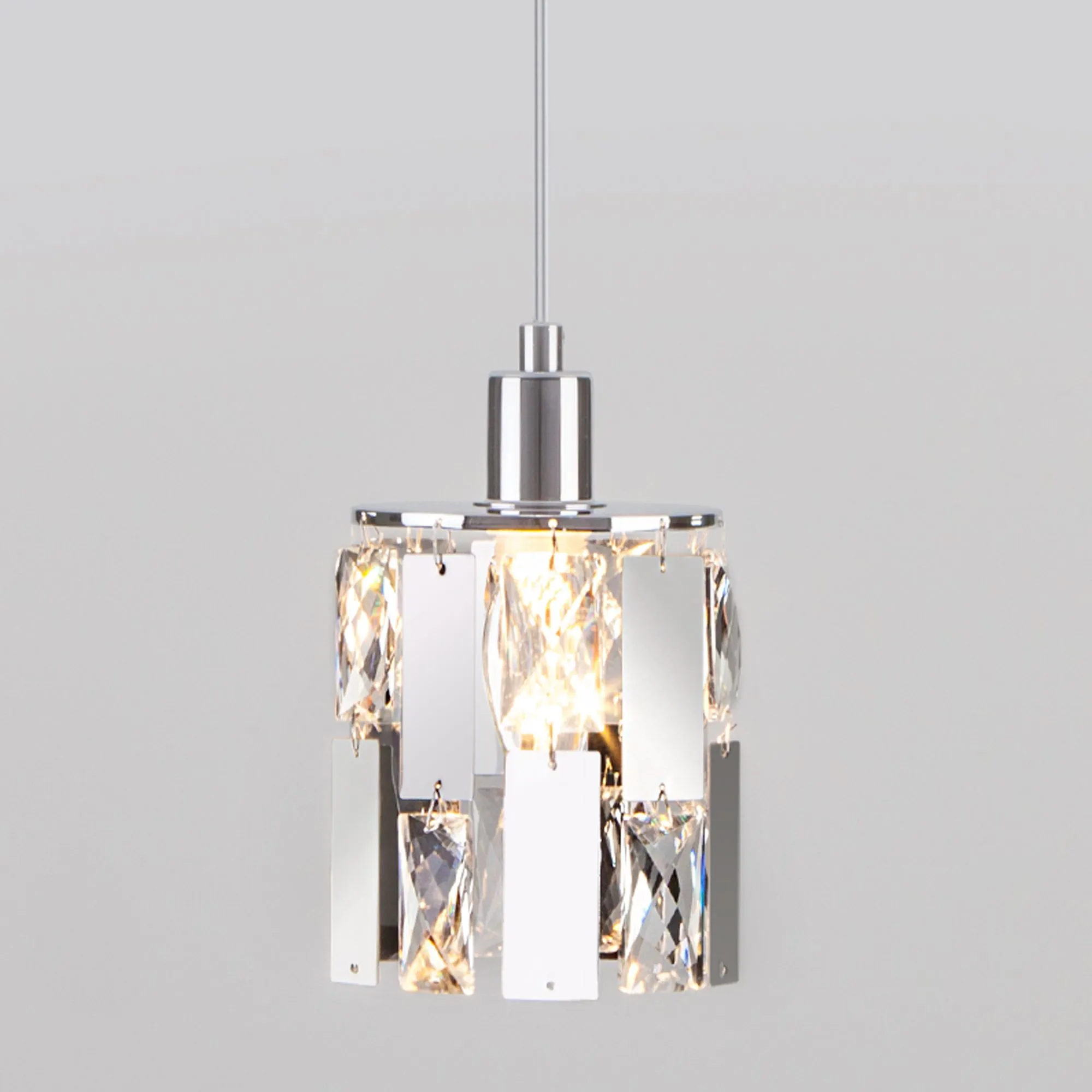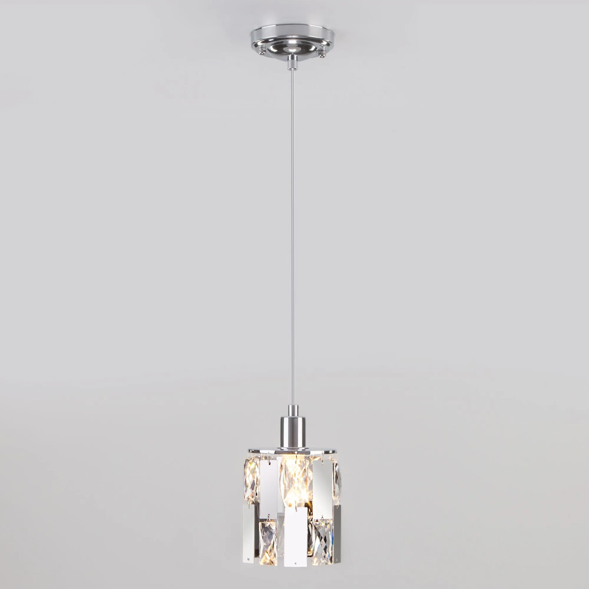 Артикул: 50101/1; Бренд: Eurosvet; Серия: Scoppio; Стиль: Art Deco; Контемпорари; товарная группа: подвесной акцентный светильник; Тип светильника: сменная лампа; Тип светильника по помещению: гостиная;гостиница;загородный дом;кафе;кухня;спальня; Срок службы, г: 8; Тип крепления: планка; Степень защиты: IP20; Питание: 230 В, 50 Гц; Площадь освещения, м2: 4; Класс электро-безопасности: I; Температурный режим: -10 ... +40; Тип ламп: металл; Тип цоколя: E14; Материал: металл;хрусталь; Материал плафона: металл;хрусталь; Цвет: хром;прозрачный; Цвет каркаса: хром, Хром; Цвет плафона: хром;прозрачный; Умный дом: совместим с умным реле;совместим с умным выключателем; Гарантия, мес: 12; Длина, мм: 115; Ширина, мм: 115; Min высота, мм: 140; max высота: 1000; Диаметр потолочной чаши, мм: 105; Высота встраиваемой части, мм: 60; Вес упаковки, кг: 0.638; Длина упаковки, см: 13.9; Ширина упаковки, см: 13.5; Высота упаковки, см: 13.1; Объем упаковки, м3: 0.00245822; Штрихкод: 4690389143915