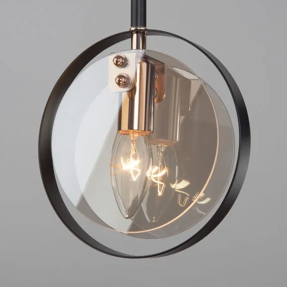 Артикул: 50121/1; Бренд: Eurosvet; Серия: Gallo; Стиль: Loft; Индустриальный; Minimalism; Контемпорари; товарная группа: подвесной акцентный светильник; Тип светильника: сменная лампа; Тип светильника по помещению: кухня;спальня;гостиница;гостиная;загородный дом;кабинет;кафе; Срок службы, г: 8; Тип крепления: планка; Степень защиты: IP20; Питание: 230 В, 50 Гц; Площадь освещения, м2: 4; Класс электро-безопасности: I; Температурный режим: -10 ... +40; Коэффициент пульсации, %: < 5; Тип ламп: металл; Тип цоколя: E14; Материал: металл;стекло; Материал плафона: стекло, Стекло; Цвет: черный;янтарный;золото; Цвет каркаса: черный;золото; Цвет плафона: янтарный, Янтарный; Умный дом: совместим с умным реле;совместим с умным выключателем; Гарантия, мес: 12; Длина, мм: 185; Ширина, мм: 65; Min высота, мм: 400; max высота: 758; Диаметр потолочной чаши, мм: 120; Высота встраиваемой части, мм: 60; Вес упаковки, кг: 0.96; Длина упаковки, см: 33.7; Ширина упаковки, см: 19.2; Высота упаковки, см: 9.9; Объем упаковки, м3: 0.00640570; Штрихкод: 4690389157875