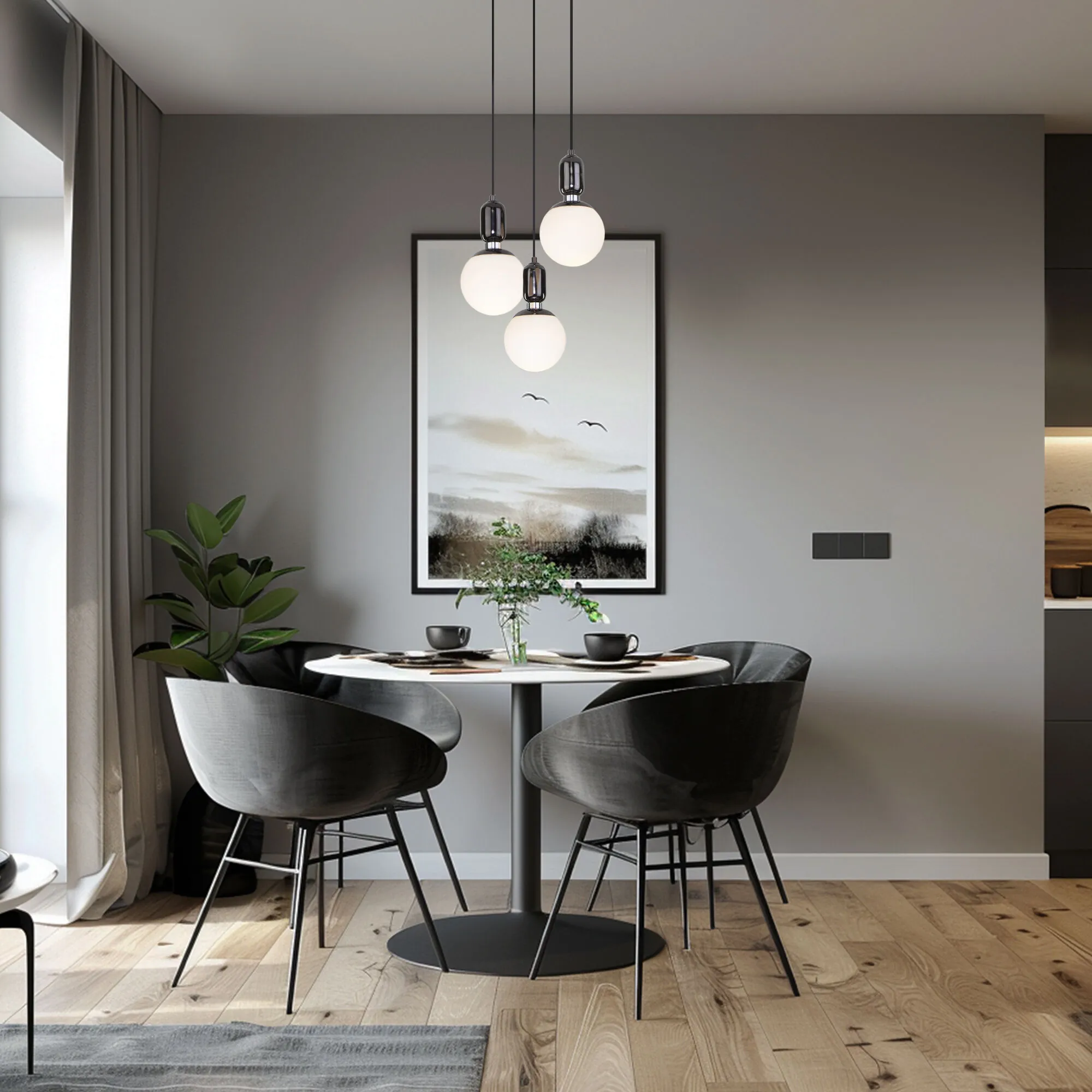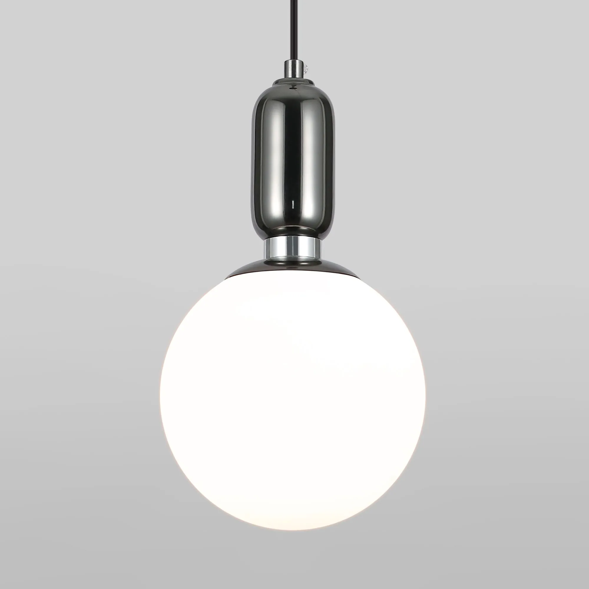 Артикул: 50197/1; Бренд: Eurosvet; Серия: Bubble; Стиль: Art Deco; товарная группа: подвесной акцентный светильник; Тип светильника: сменная лампа; Тип светильника по помещению: кафе;кухня;спальня;гостиница;гостиная;загородный дом;кабинет; Срок службы, г: 8; Тип крепления: планка; Степень защиты: IP20; Питание: 230 В, 50 Гц; Площадь освещения, м2: 4; Класс электро-безопасности: I; Температурный режим: -10 ... +40; Коэффициент пульсации, %: < 5; Тип ламп: металл; Тип цоколя: E27; Материал: металл;стекло; Материал плафона: стекло, Стекло; Цвет: белый;черный жемчуг; Цвет каркаса: Черный жемчуг, чёрный жемчуг, черный жемчуг; Цвет плафона: белый, Белый; Умный дом: совместим с умным реле;совместим с умным выключателем; Гарантия, мес: 12; Длина, мм: 180; Ширина, мм: 180; Min высота, мм: 435; max высота: 1200; Высота встраиваемой части, мм: 60; Вес упаковки, кг: 1.16; Длина упаковки, см: 32.5; Ширина упаковки, см: 23.7; Высота упаковки, см: 24.9; Объем упаковки, м3: 0.01917923; Штрихкод: 4690389167225
