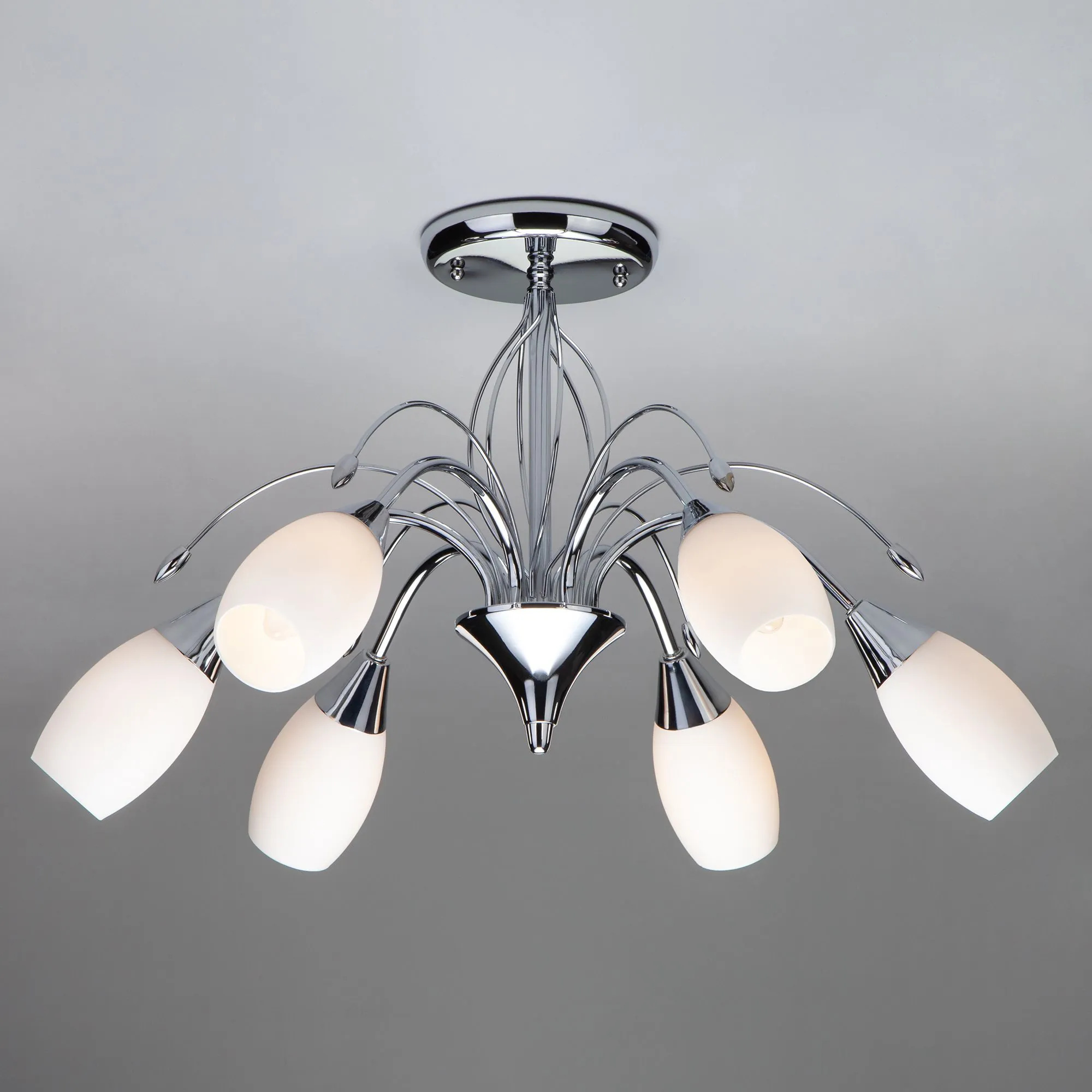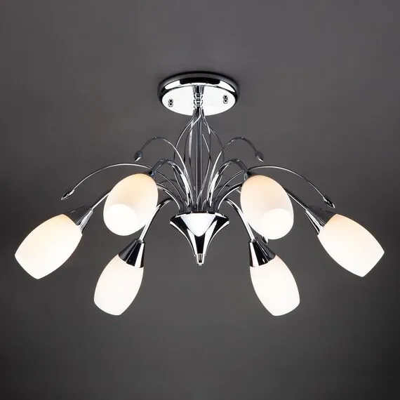 Артикул: 22080/6; Бренд: Eurosvet; Серия: Ginevra; Стиль: Modern; товарная группа: Потолочный светильник; Тип светильника: сменная лампа; Тип светильника по помещению: спальня;гостиная; Срок службы, г: 8; Тип крепления: планка; Степень защиты: IP20; Питание: 230 В, 50 Гц; Площадь освещения, м2: 19; Класс электро-безопасности: I; Температурный режим: -10 ... +40; Коэффициент пульсации, %: < 5; Тип ламп: металл; Тип цоколя: E14; Материал: металл;стекло; Материал плафона: стекло, Стекло; Цвет: хром;белый; Цвет каркаса: хром, Хром; Цвет плафона: белый, Белый; Умный дом: совместим с умным реле;совместим с умным выключателем; Гарантия, мес: 12; Длина, мм: 600; Ширина, мм: 600; высота: 350; Диаметр потолочной чаши, мм: 150; Высота встраиваемой части, мм: 40; Вес упаковки, кг: 2.469; Длина упаковки, см: 38.9; Ширина упаковки, см: 30.7; Высота упаковки, см: 16.9; Объем упаковки, м3: 0.02018249; Штрихкод: 4690389012501