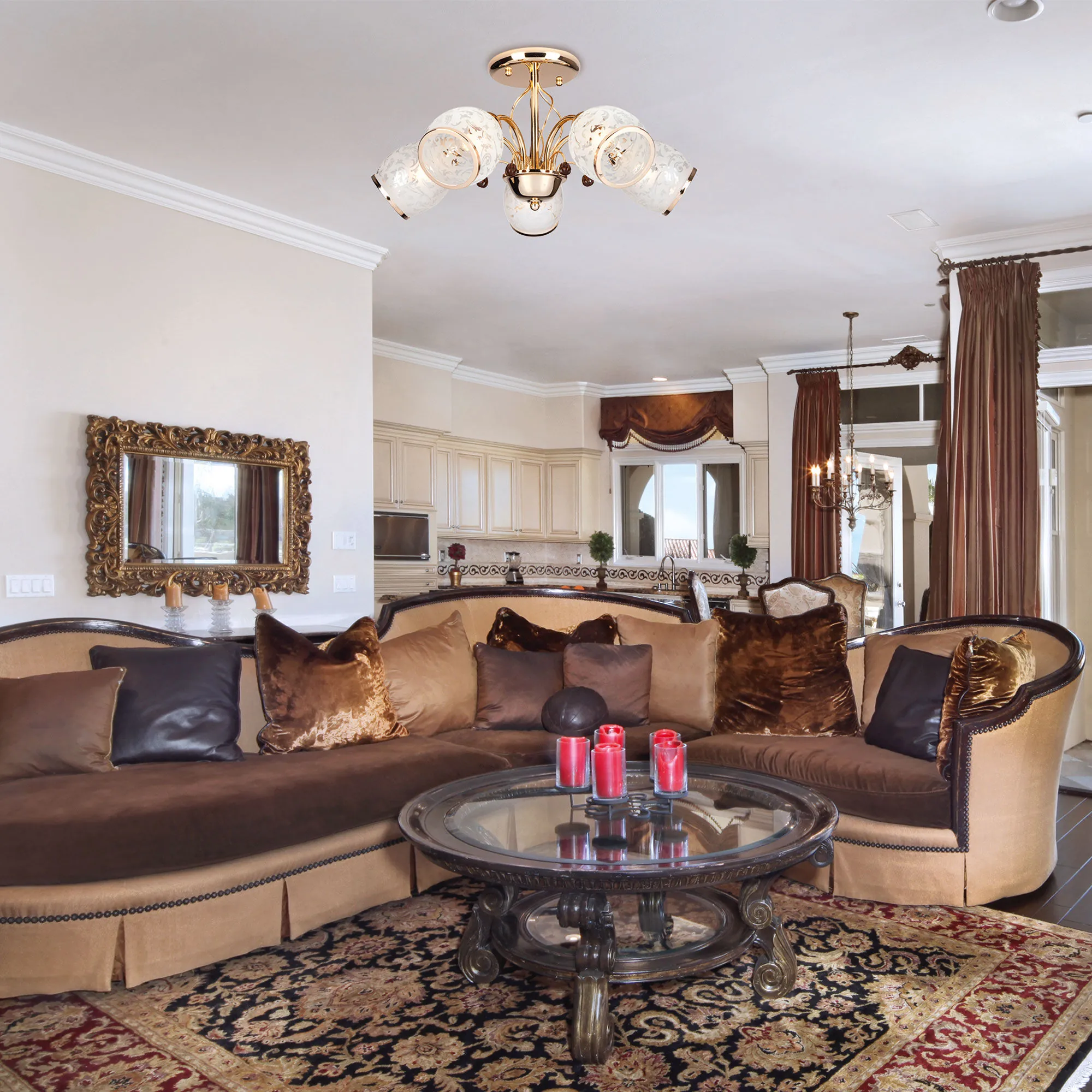 Артикул: 30026/5; Бренд: Eurosvet; Серия: Gabriella; Стиль: Classic; Английский; товарная группа: Потолочный светильник; Тип светильника: сменная лампа; Тип светильника по помещению: гостиная;спальня;гостиница; Срок службы, г: 8; Тип крепления: планка; Степень защиты: IP20; Питание: 230 В, 50 Гц; Площадь освещения, м2: 24; Класс электро-безопасности: I; Температурный режим: -10 ... +40; Коэффициент пульсации, %: < 5; Тип ламп: металл; Тип цоколя: E27; Материал: металл;стекло; Материал плафона: стекло;металл; Цвет: золото;белый; Цвет каркаса: золото, Золото; Цвет плафона: золото;белый; Гарантия, мес: 12; Длина, мм: 520; Ширина, мм: 520; высота: 270; Высота встраиваемой части, мм: 60; Вес упаковки, кг: 2.188; Длина упаковки, см: 38.1; Ширина упаковки, см: 25.9; Высота упаковки, см: 20.3; Объем упаковки, м3: 0.02003184; Штрихкод: 4690389076671