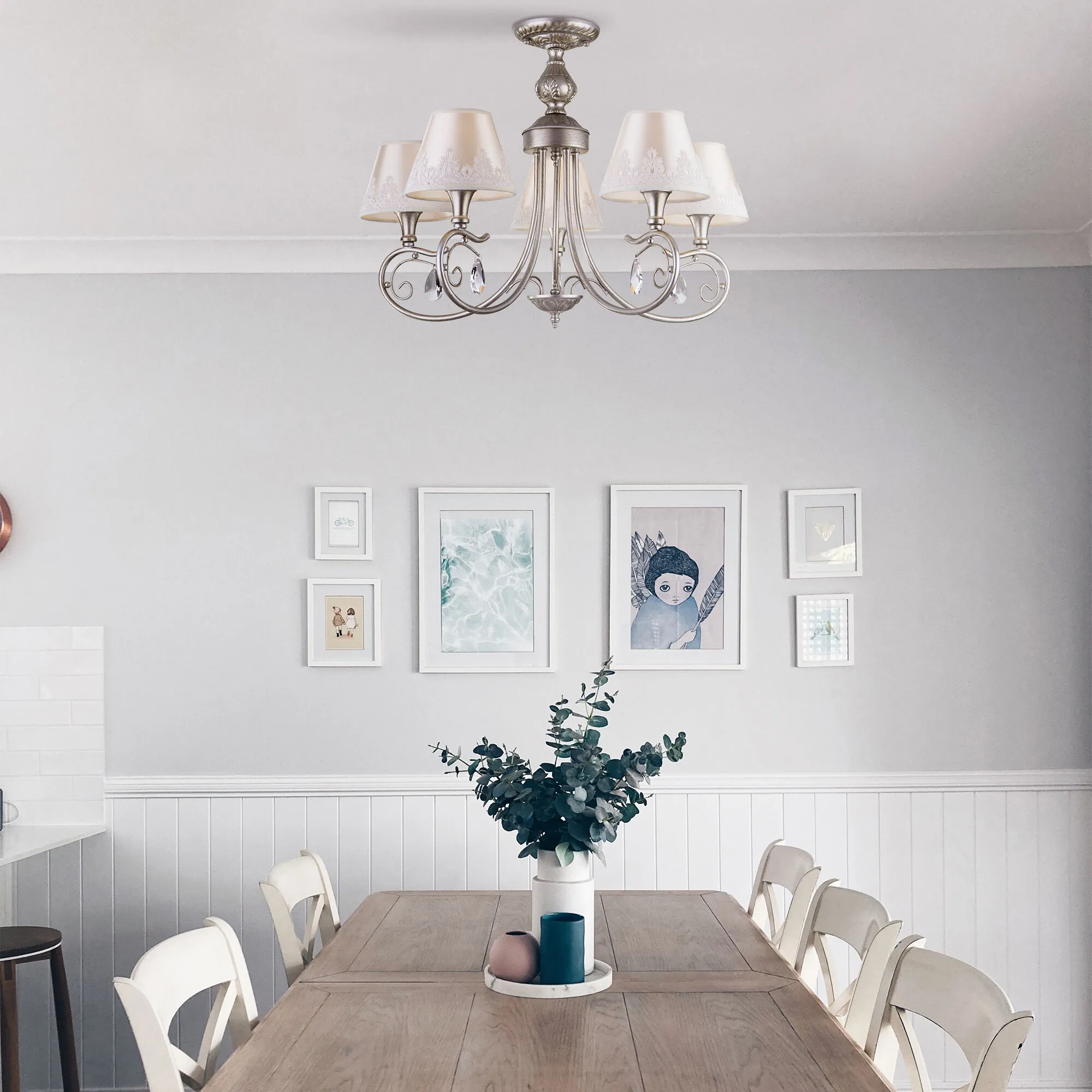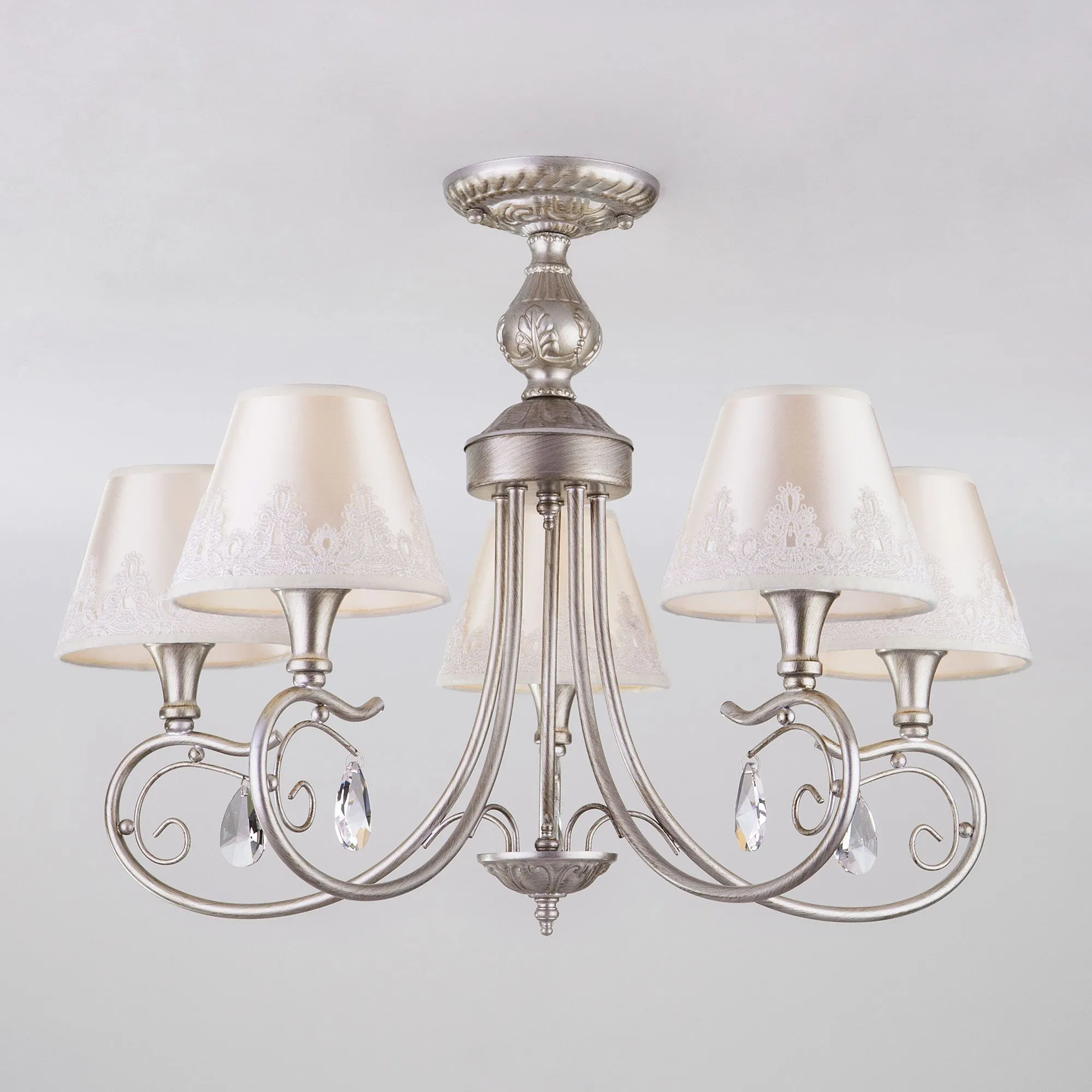 Артикул: 60069/5; Бренд: Eurosvet; Серия: Incanto; Стиль: Английский; Classic; товарная группа: Потолочный светильник; Тип светильника: сменная лампа; Тип светильника по помещению: спальня;гостиная; Срок службы, г: 8; Тип крепления: планка; Степень защиты: IP20; Питание: 230 В, 50 Гц; Площадь освещения, м2: 16; Класс электро-безопасности: I; Температурный режим: -10 ... +40; Тип ламп: металл; Тип цоколя: E14; Материал: металл;хрусталь;ткань; Материал плафона: ткань; Цвет: серебро;бежевый; Цвет каркаса: серебро, Серебро; Цвет плафона: бежевый, Бежевый; Умный дом: совместим с умным реле;совместим с умным выключателем; Гарантия, мес: 12; Длина, мм: 613; Ширина, мм: 613; высота: 483; Диаметр потолочной чаши, мм: 130; Высота встраиваемой части, мм: 40; Вес упаковки, кг: 2.771; Длина упаковки, см: 42.4; Ширина упаковки, см: 28.2; Высота упаковки, см: 19.3; Объем упаковки, м3: 0.02307662; Штрихкод: 4690389121326