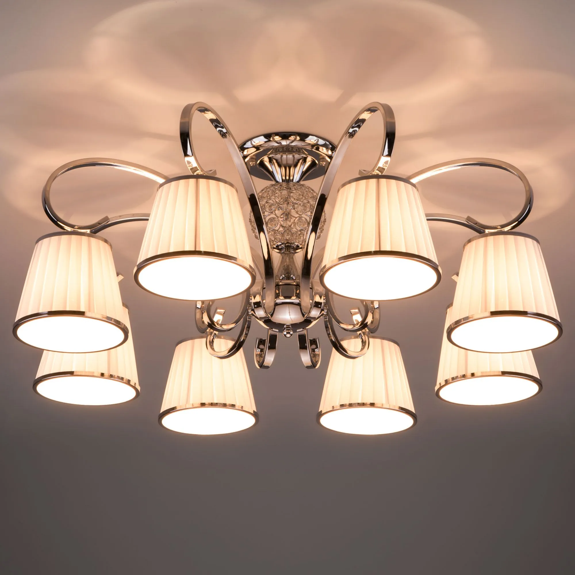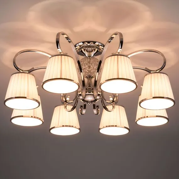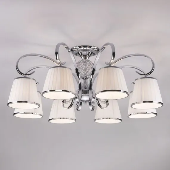 Артикул: 60088/8; Бренд: Eurosvet; Серия: Tessa; Стиль: Английский; Classic; товарная группа: Потолочный светильник; Тип светильника: сменная лампа; Тип светильника по помещению: спальня;гостиная; Срок службы, г: 6; Тип крепления: планка; Степень защиты: IP20; Питание: 230 В, 50 Гц; Площадь освещения, м2: 22; Класс электро-безопасности: I; Температурный режим: -10 ... +40; Тип ламп: металл; Тип цоколя: E14; Материал: металл;ткань; Материал плафона: ткань; Цвет: хром;белый; Цвет каркаса: хром, Хром; Цвет плафона: белый, Белый; Умный дом: совместим с умным реле;совместим с умным выключателем; Гарантия, мес: 12; Длина, мм: 780; Ширина, мм: 780; высота: 320; Диаметр потолочной чаши, мм: 220; Высота встраиваемой части, мм: 40; Вес упаковки, кг: 4.26; Длина упаковки, см: 42; Ширина упаковки, см: 36.9; Высота упаковки, см: 20.8; Объем упаковки, м3: 0.03223584; Штрихкод: 4690389135354