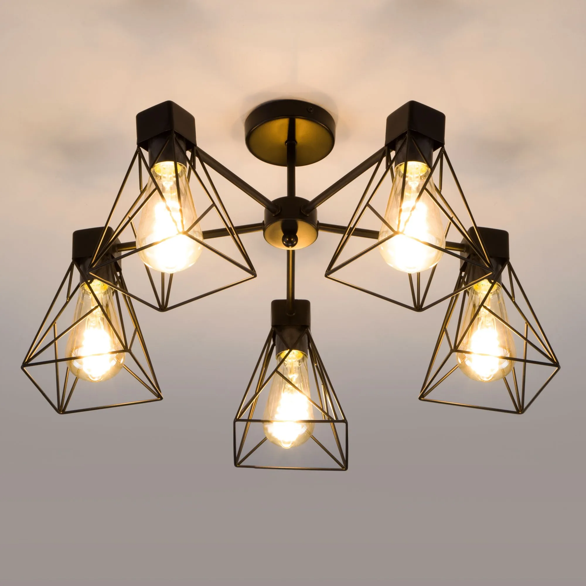 Артикул: 70107/5; Бренд: Eurosvet; Серия: Trappola; Стиль: Loft; Индустриальный; товарная группа: Потолочный светильник; Тип светильника: сменная лампа; Тип светильника по помещению: гостиная;гостиница;загородный дом;кафе;кухня;спальня; Срок службы, г: 6; Тип крепления: планка; Степень защиты: IP20; Питание: 230 В, 50 Гц; Площадь освещения, м2: 23; Класс электро-безопасности: I; Температурный режим: -10 ... +40; Коэффициент пульсации, %: < 5; Тип ламп: металл; Тип цоколя: E27; Материал: Металл; Материал плафона: металл, Металл; Цвет: черный; Цвет каркаса: черный, Черный; Цвет плафона: черный, Черный; Умный дом: совместим с умным реле;совместим с умным выключателем; Гарантия, мес: 12; Длина, мм: 560; Ширина, мм: 560; высота: 330; Диаметр потолочной чаши, мм: 100; Высота встраиваемой части, мм: 60; Вес упаковки, кг: 2.013; Длина упаковки, см: 39.7; Ширина упаковки, см: 30.8; Высота упаковки, см: 14.8; Объем упаковки, м3: 0.01809685; Штрихкод: 4690389140211