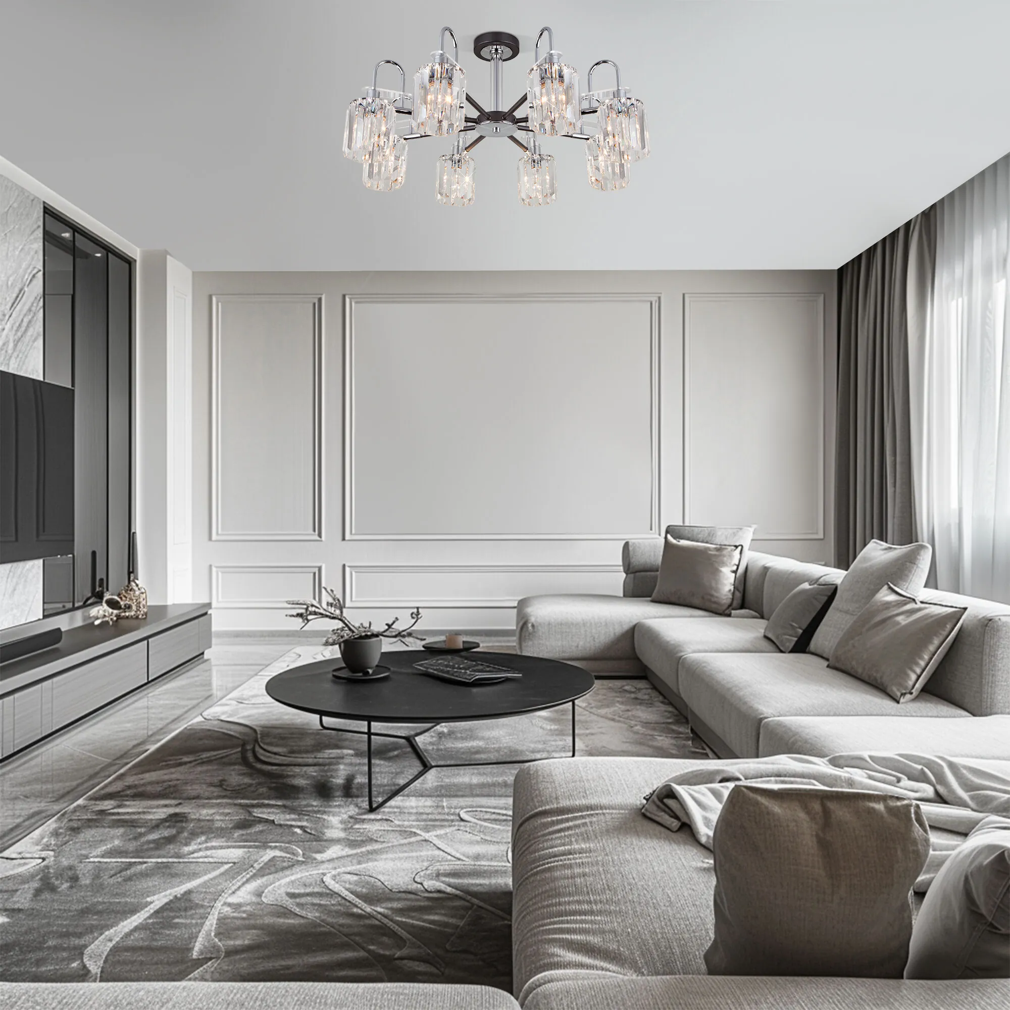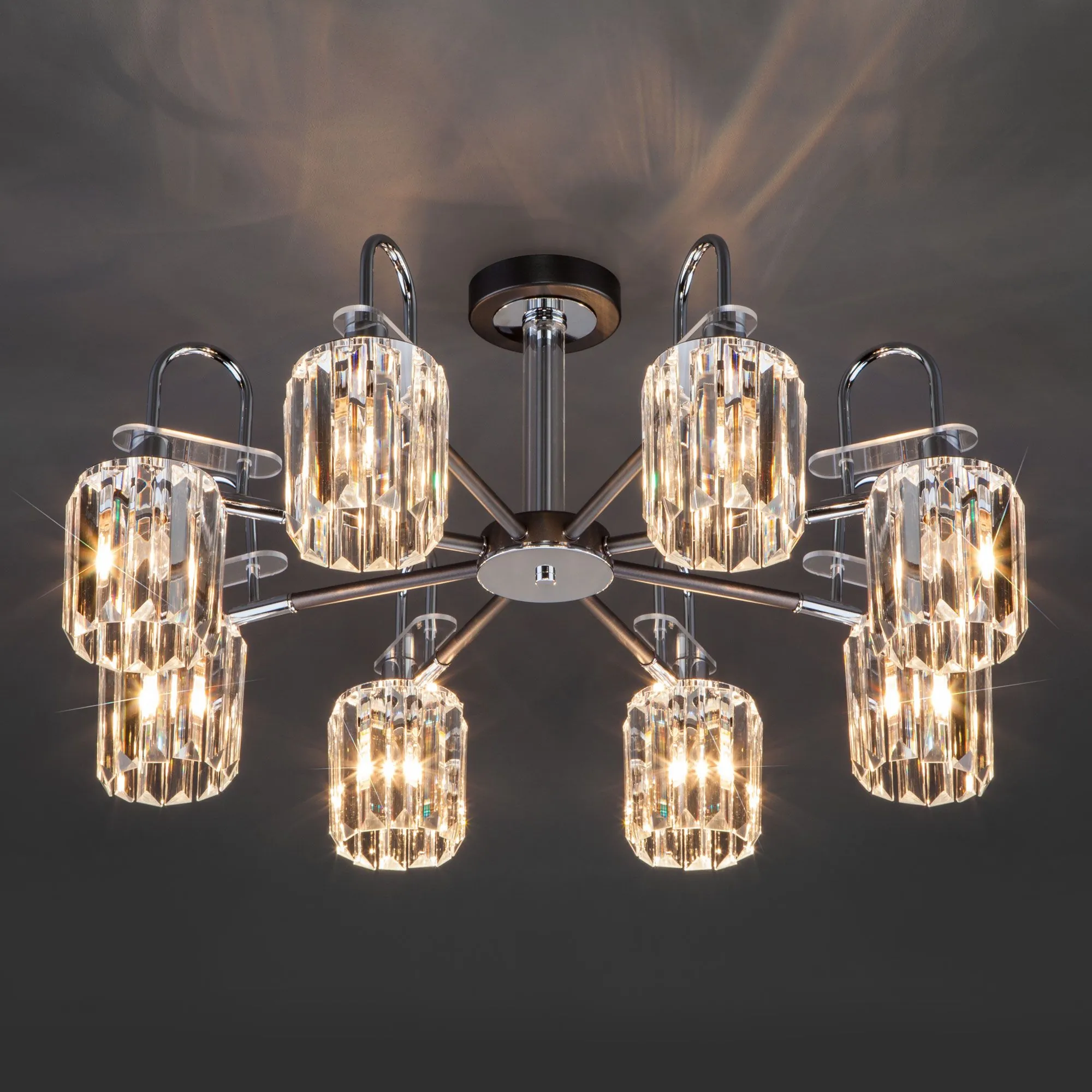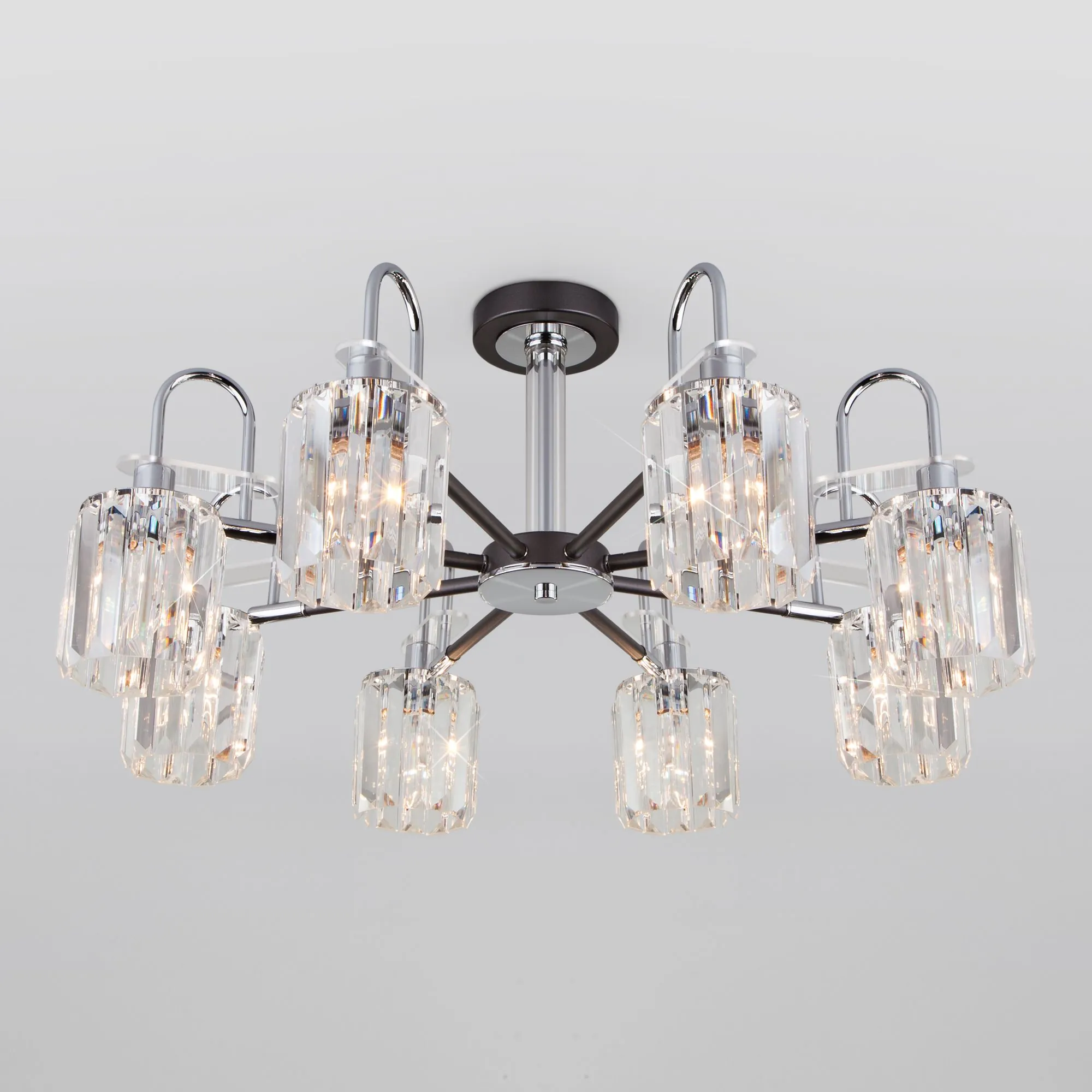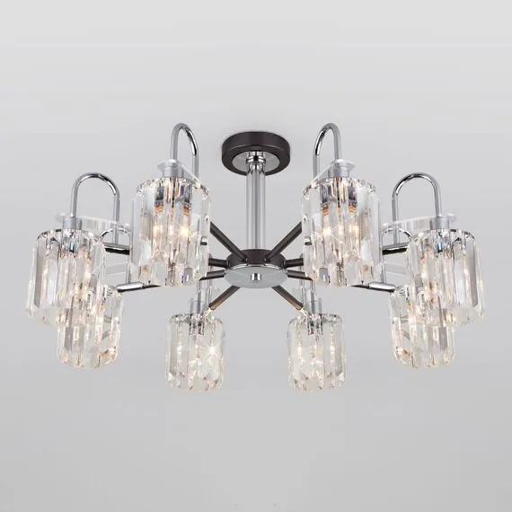 Артикул: 70090/8; Бренд: Eurosvet; Серия: Tenia; Стиль: Classic; товарная группа: Потолочный светильник; Тип светильника: сменная лампа; Тип светильника по помещению: спальня;гостиная;гостиница; Срок службы, г: 8; Тип крепления: планка; Степень защиты: IP20; Питание: 230 В, 50 Гц; Площадь освещения, м2: 36; Класс электро-безопасности: I; Температурный режим: -10 ... +40; Коэффициент пульсации, %: < 5; Тип ламп: металл; Тип цоколя: E14; Материал: металл;хрусталь; Материал плафона: хрусталь; Цвет: серый;прозрачный; Цвет каркаса: черный;хром; Цвет плафона: прозрачный, Прозрачный; Умный дом: совместим с умным реле;совместим с умным выключателем; Гарантия, мес: 12; Длина, мм: 730; Ширина, мм: 730; высота: 340; Диаметр потолочной чаши, мм: 120; Высота встраиваемой части, мм: 60; Вес упаковки, кг: 5.401; Длина упаковки, см: 43.5; Ширина упаковки, см: 27.7; Высота упаковки, см: 16.9; Объем упаковки, м3: 0.02036366; Штрихкод: 4690389140754