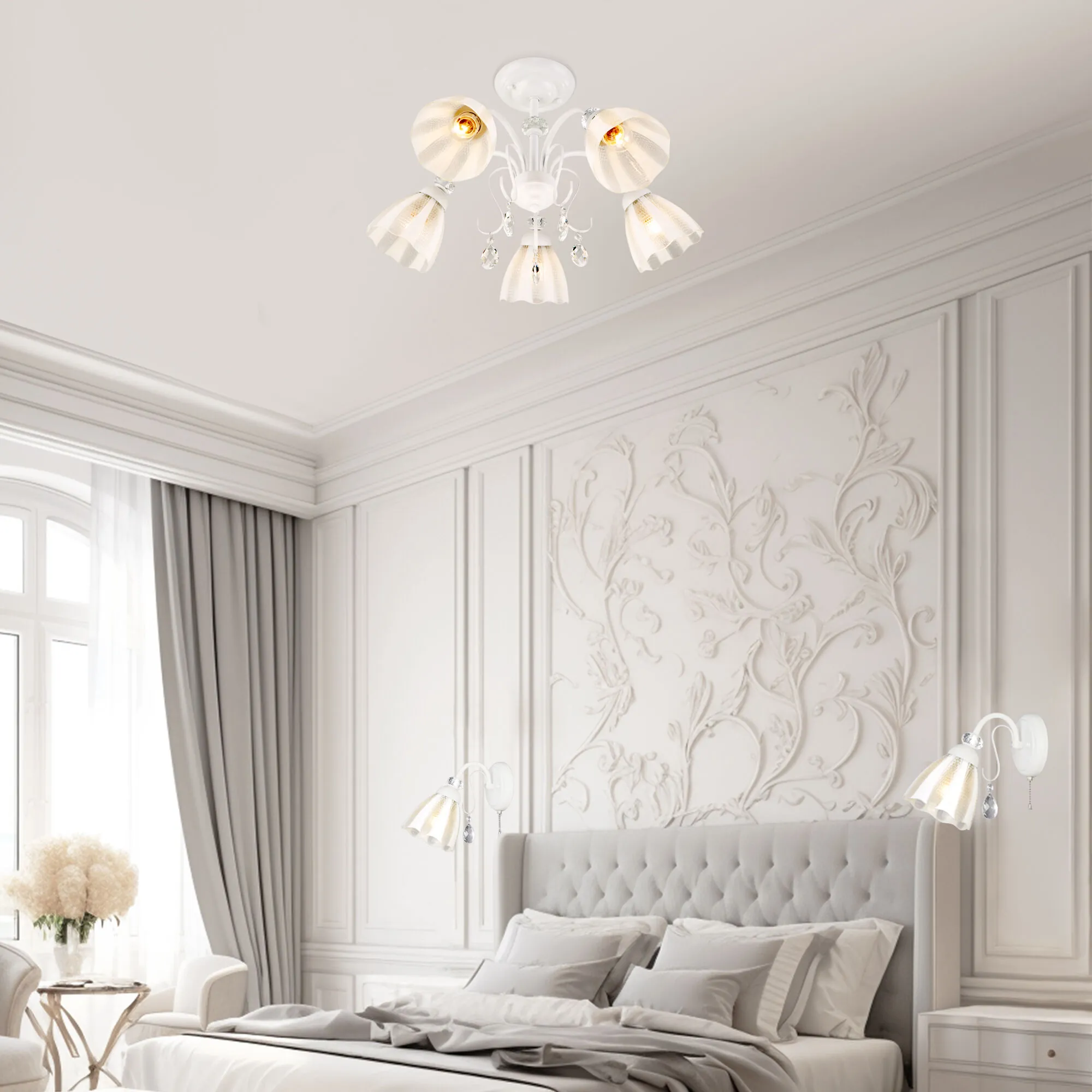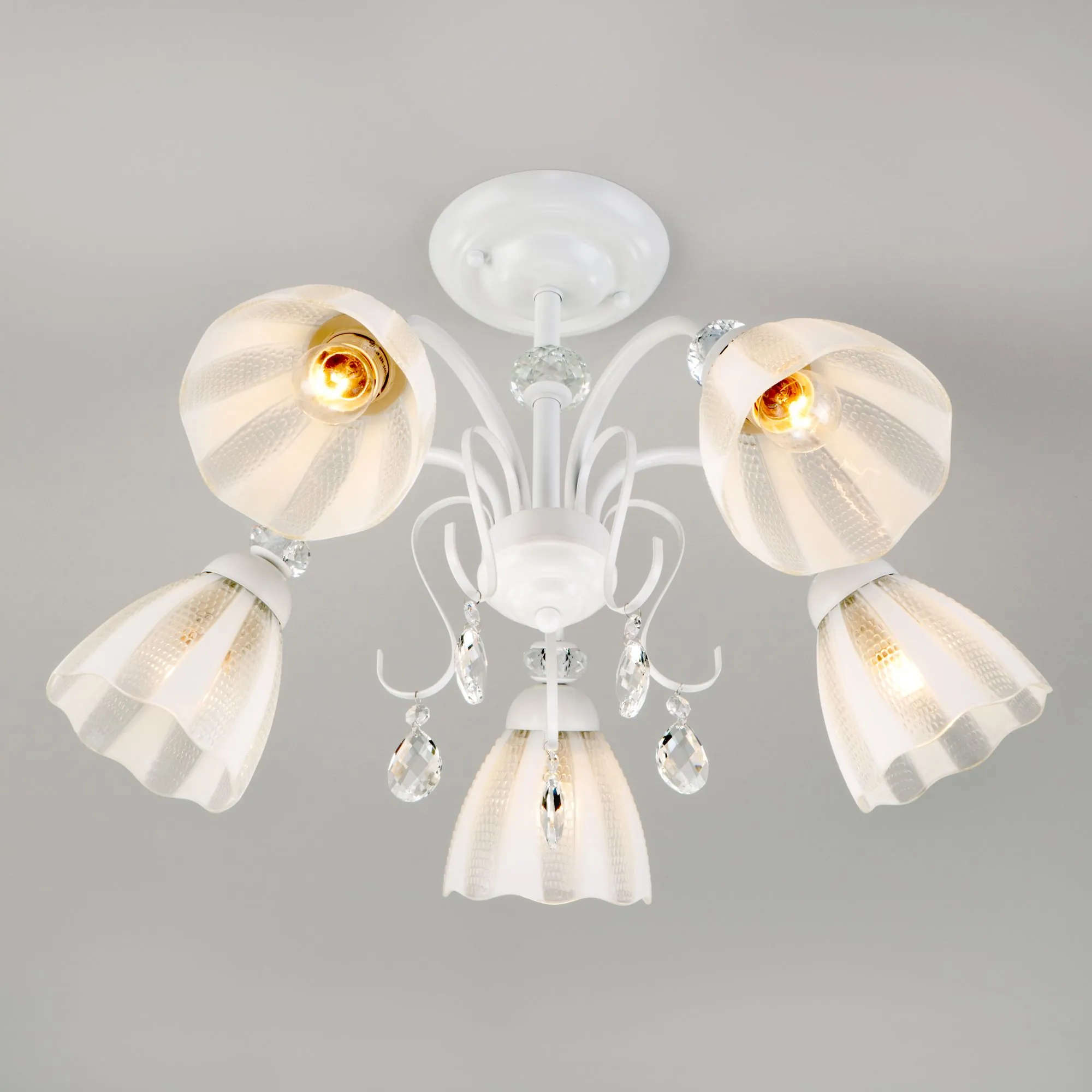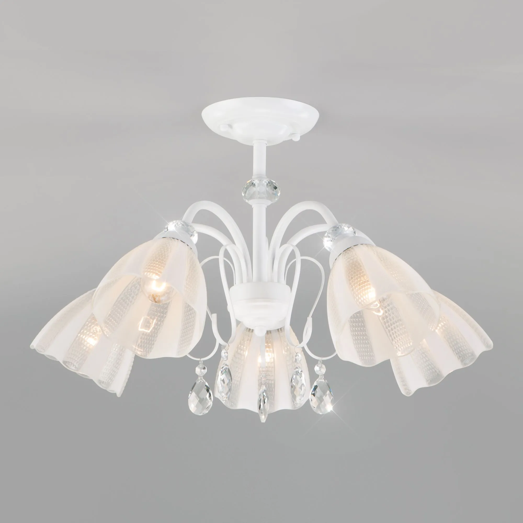 Артикул: 30155/5; Бренд: Eurosvet; Серия: Floranse; Стиль: Modern; товарная группа: Потолочный светильник; Тип светильника: сменная лампа; Тип светильника по помещению: спальня;гостиная;гостиница;загородный дом; Срок службы, г: 8; Тип крепления: планка; Степень защиты: IP20; Питание: 230 В, 50 Гц; Площадь освещения, м2: 23; Класс электро-безопасности: I; Температурный режим: -10 ... +40; Тип ламп: металл; Тип цоколя: E27; Материал: металл;стекло; Материал плафона: стекло, Стекло; Цвет: белый; Цвет каркаса: белый, Белый; Цвет плафона: белый, Белый; Умный дом: совместим с умным реле;совместим с умным выключателем; Гарантия, мес: 12; Длина, мм: 640; Ширина, мм: 640; высота: 400; Диаметр потолочной чаши, мм: 150; Высота встраиваемой части, мм: 60; Вес упаковки, кг: 3.92; Длина упаковки, см: 31.1; Ширина упаковки, см: 31.5; Высота упаковки, см: 17.2; Объем упаковки, м3: 0.01684998; Штрихкод: 4690389141751