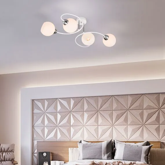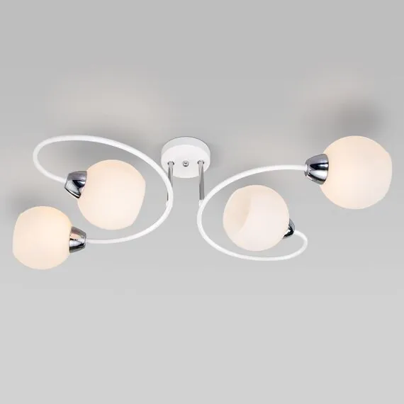 Артикул: 30136/4; Бренд: Eurosvet; Серия: Tulia; Стиль: Modern; товарная группа: Потолочный светильник; Тип светильника: сменная лампа; Тип светильника по помещению: гостиная;спальня;гостиница; Срок службы, г: 8; Тип крепления: планка; Степень защиты: IP20; Питание: 230 В, 50 Гц; Площадь освещения, м2: 8; Класс электро-безопасности: I; Температурный режим: -10 ... +40; Коэффициент пульсации, %: < 5; Тип ламп: металл; Тип цоколя: E27; Материал: металл;стекло; Материал плафона: стекло, Стекло; Цвет: белый; Цвет каркаса: белый, Белый; Цвет плафона: белый, Белый; Умный дом: совместим с умным реле;совместим с умным выключателем; Гарантия, мес: 12; Длина, мм: 640; Ширина, мм: 390; высота: 210; Диаметр потолочной чаши, мм: 100; Высота встраиваемой части, мм: 40; Вес упаковки, кг: 1.774; Длина упаковки, см: 33.2; Ширина упаковки, см: 29.5; Высота упаковки, см: 21.8; Объем упаковки, м3: 0.02135092; Штрихкод: 4690389165269