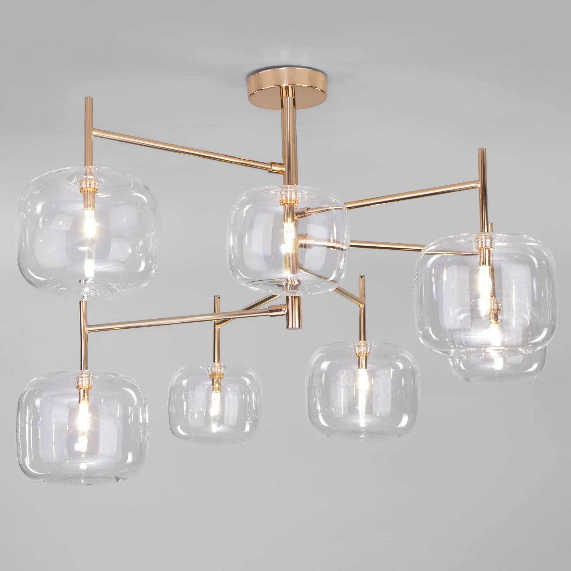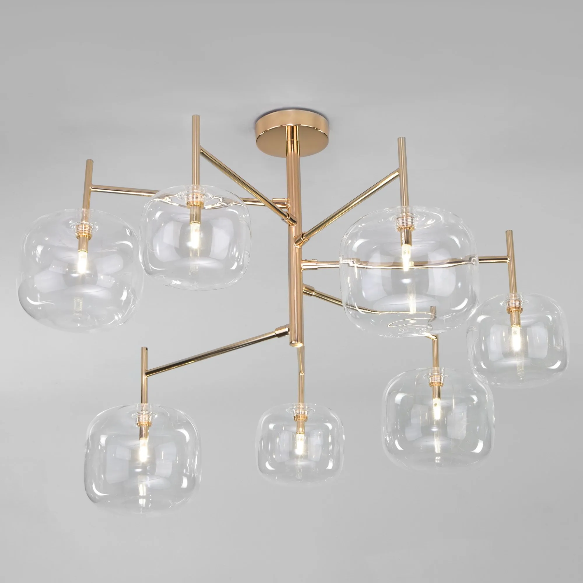 Артикул: 70128/7; Бренд: Eurosvet; Серия: Jar; Стиль: Art Deco; товарная группа: Потолочный светильник; Тип светильника: сменная лампа; Тип светильника по помещению: гостиная;спальня;кабинет;гостиница; Срок службы, г: 8; Тип крепления: планка; Степень защиты: IP20; Площадь освещения, м2: 5; Класс электро-безопасности: I; Температурный режим: -10 ... +40; Тип ламп: металл; Тип цоколя: G4; Материал: металл;стекло; Материал плафона: стекло, Стекло; Цвет: золото;прозрачный; Цвет каркаса: золото, Золото; Цвет плафона: прозрачный, Прозрачный; Умный дом: совместим с умным реле;совместим с умным выключателем; Гарантия, мес: 12; Длина, мм: 760; Ширина, мм: 760; высота: 500; Диаметр потолочной чаши, мм: 120; Высота встраиваемой части, мм: 3; Вес упаковки, кг: 3.04; Длина упаковки, см: 40.8; Ширина упаковки, см: 40.1; Высота упаковки, см: 36; Объем упаковки, м3: 0.05889888; Штрихкод: 4690389177590