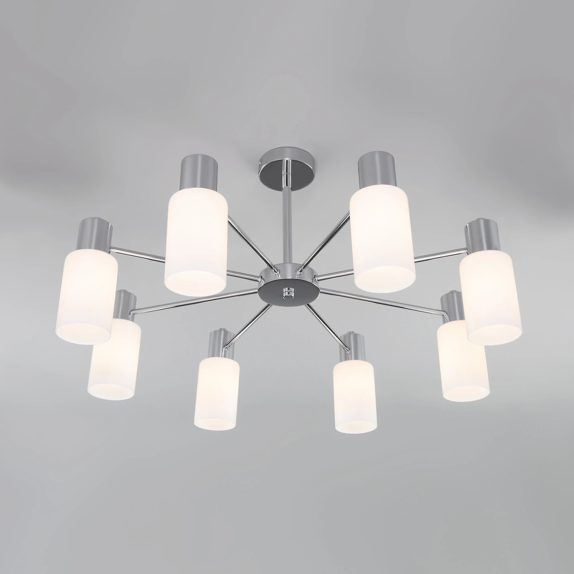 Артикул: 70160/8; Бренд: Eurosvet; Серия: Vegga; Стиль: Контемпорари; классика; Modern; Scandinavian; товарная группа: Потолочный светильник; Тип светильника: сменная лампа; Тип светильника по помещению: гостиная;спальня;кабинет;гостиница; Срок службы, г: 8; Тип крепления: планка; Степень защиты: IP20; Питание: 230 В, 50 Гц; Площадь освещения, м2: 14; Класс электро-безопасности: I; Температурный режим: -10 ... +40; Коэффициент пульсации, %: < 5; Тип ламп: металл; Тип цоколя: E14; Материал: металл;стекло; Материал плафона: стекло, Стекло; Цвет: хром;белый; Цвет каркаса: хром, Хром; Цвет плафона: белый, Белый; Умный дом: совместим с умным реле;совместим с умным выключателем; Гарантия, мес: 12; Длина, мм: 720; Ширина, мм: 720; высота: 385; Диаметр потолочной чаши, мм: 120; Высота встраиваемой части, мм: 60; Вес упаковки, кг: 3.43; Длина упаковки, см: 36.3; Ширина упаковки, см: 25; Высота упаковки, см: 34.7; Объем упаковки, м3: 0.03149025; Штрихкод: 4690389178764