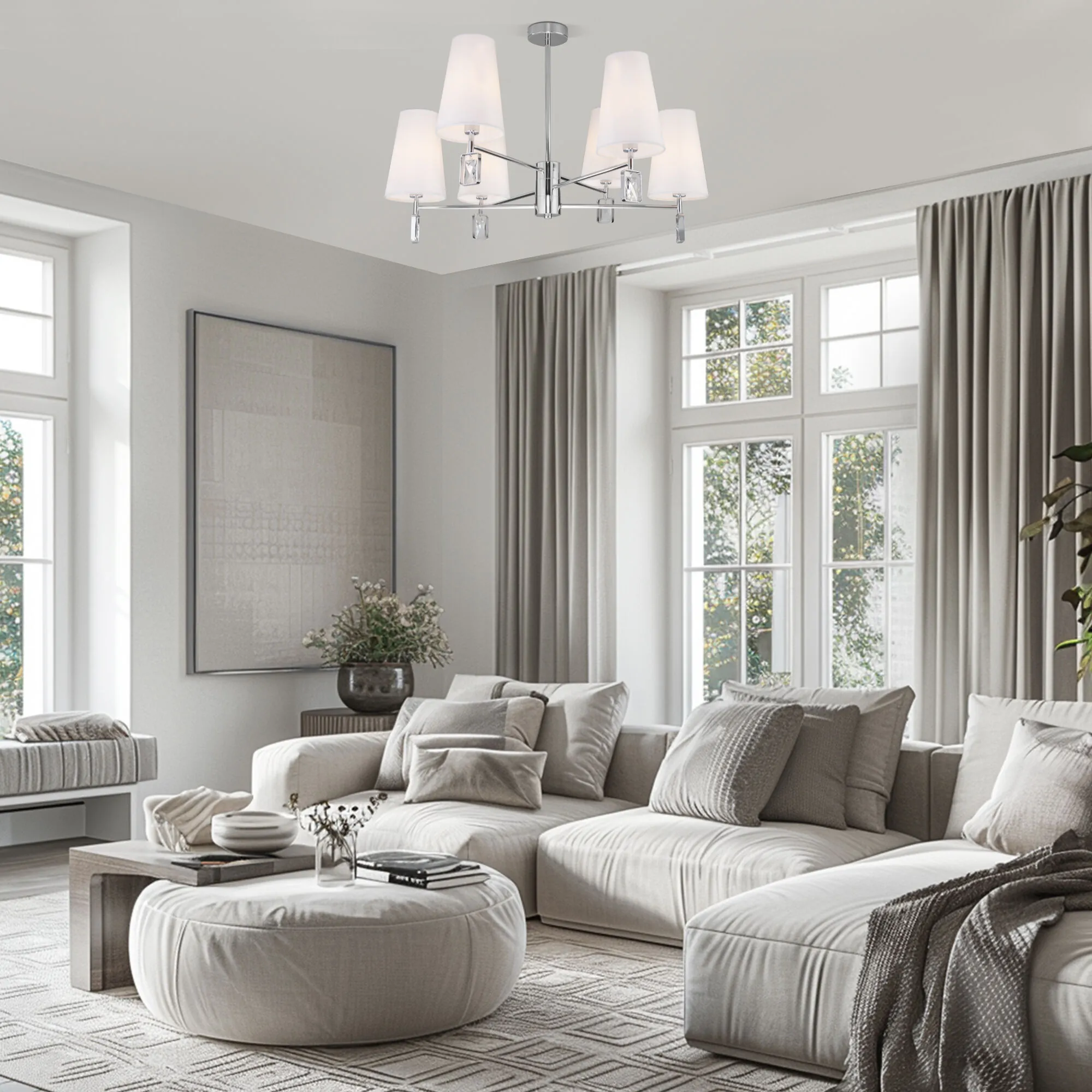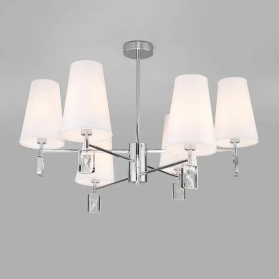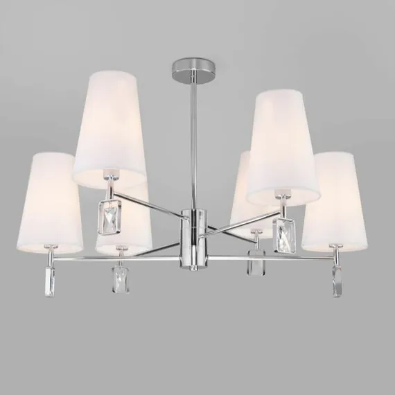 Артикул: 60137/6; Бренд: Eurosvet; Серия: Milazzo; Стиль: классика; товарная группа: Потолочный светильник; Тип светильника: сменная лампа; Тип светильника по помещению: гостиница;гостиная;кабинет;офис;кафе;кухня; Срок службы, г: 8; Тип крепления: планка; Степень защиты: IP20; Питание: 230 В, 50 Гц; Площадь освещения, м2: 12; Класс электро-безопасности: I; Температурный режим: -10 ... +40; Тип ламп: металл; Тип цоколя: E14; Материал: ткань;металл;хрусталь; Материал плафона: ткань; Цвет: белый;хром; Цвет каркаса: хром, Хром; Цвет плафона: белый, Белый; Умный дом: совместим с умным выключателем;совместим с умным реле; Гарантия, мес: 12; Длина, мм: 700; Ширина, мм: 700; высота: 465; Диаметр потолочной чаши, мм: 100; Высота встраиваемой части, мм: 40; Вес упаковки, кг: 2.782; Длина упаковки, см: 44.5; Ширина упаковки, см: 18.4; Высота упаковки, см: 24.7; Объем упаковки, м3: 0.02022436; Штрихкод: 4690389185960