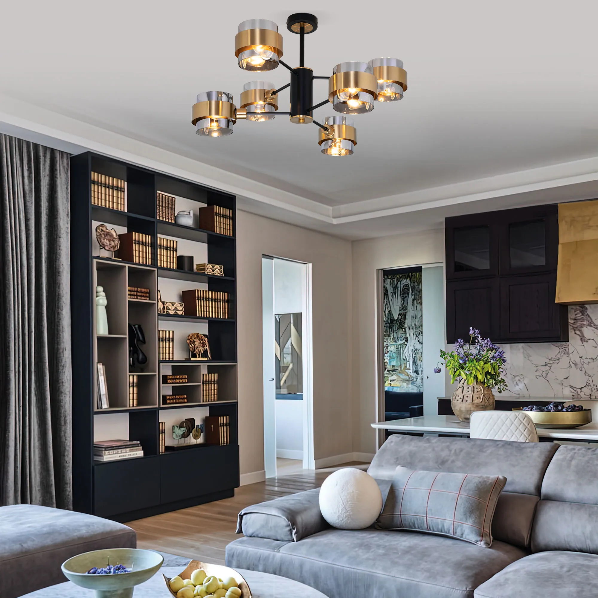 Артикул: 70127/6; Бренд: Eurosvet; Серия: Arcada; Стиль: Loft; Контемпорари; товарная группа: Потолочный светильник; Тип светильника: сменная лампа; Тип светильника по помещению: гостиная;спальня;гостиница; Срок службы, г: 8; Тип крепления: планка; Степень защиты: IP20; Питание: 230 В, 50 Гц; Площадь освещения, м2: 10; Температурный режим: -10 ... +45; Коэффициент пульсации, %: < 5; Тип ламп: металл; Тип цоколя: E14; Материал: стекло;металл; Материал плафона: стекло;металл; Цвет: черный;дымчатый;латунь; Цвет каркаса: черный, Черный; Цвет плафона: дымчатый, Дымчатый; Умный дом: совместим с умным выключателем;совместим с умным реле; Гарантия, мес: 12; Длина, мм: 650; Ширина, мм: 650; высота: 345; Высота встраиваемой части, мм: 60; Вес упаковки, кг: 3.475; Длина упаковки, см: 30.6; Ширина упаковки, см: 29.8; Высота упаковки, см: 40.2; Объем упаковки, м3: 0.03665758; Штрихкод: 4690389186905