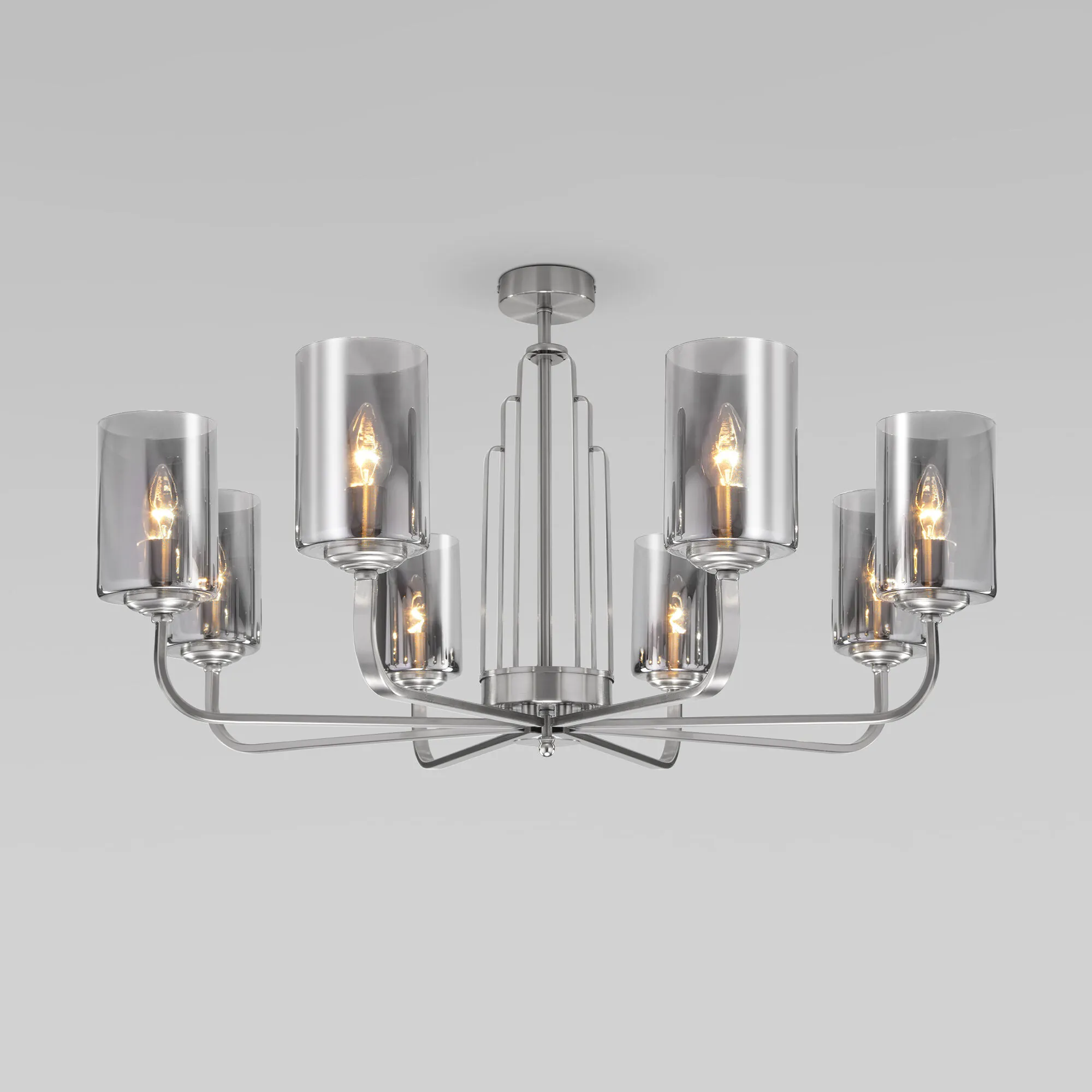 Артикул: 60138/8; Бренд: Eurosvet; Серия: Defi; Стиль: Art Deco; товарная группа: Потолочный светильник; Тип светильника: сменная лампа; Тип светильника по помещению: гостиница;гостиная;офис;кабинет;спальня; Срок службы, г: 8; Степень защиты: IP20; Питание: 230 В, 50 Гц; Площадь освещения, м2: 14; Класс электро-безопасности: I; Температурный режим: -10 ... +40; Тип ламп: металл; Тип цоколя: E14; Материал: металл;стекло; Материал плафона: стекло, Стекло; Цвет: никель; Цвет каркаса: никель, Никель; Цвет плафона: серый, Серый; Умный дом: совместим с умным выключателем;совместим с умным реле; Гарантия, мес: 12; Длина, мм: 800; Ширина, мм: 800; высота: 450; Высота встраиваемой части, мм: 60; Вес упаковки, кг: 5.092; Длина упаковки, см: 42.2; Ширина упаковки, см: 29.6; Высота упаковки, см: 40.8; Объем упаковки, м3: 0.05096410; Штрихкод: 4690389188206