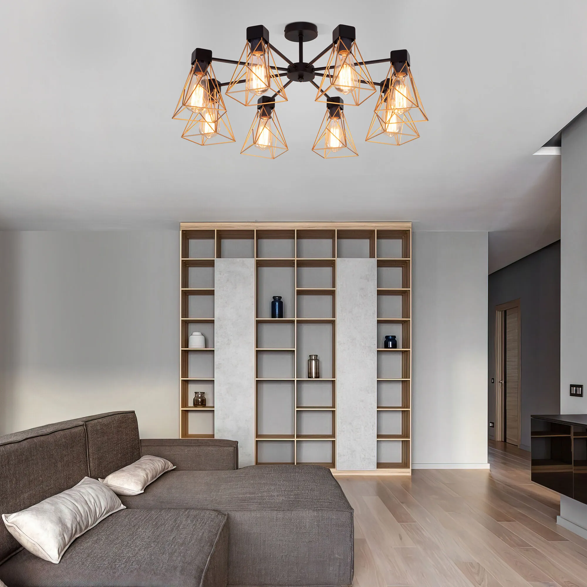 Артикул: 70107/8; Бренд: Eurosvet; Серия: Trappola; Стиль: Loft; Индустриальный; товарная группа: Потолочный светильник; Тип светильника: сменная лампа; Тип светильника по помещению: гостиница;гостиная;кафе;кабинет;спальня; Срок службы, г: 6; Тип крепления: планка; Степень защиты: IP20; Питание: 230 В, 50 Гц; Площадь освещения, м2: 36; Класс электро-безопасности: I; Температурный режим: -10 ... +40; Коэффициент пульсации, %: < 5; Тип ламп: металл; Тип цоколя: E27; Материал: Металл; Материал плафона: металл, Металл; Цвет: черный;латунь; Цвет каркаса: черный, Черный; Цвет плафона: латунь, Латунь; Умный дом: совместим с умным выключателем;совместим с умным реле; Гарантия, мес: 12; Длина, мм: 700; Ширина, мм: 700; высота: 330; Высота встраиваемой части, мм: 60; Вес упаковки, кг: 3.121; Длина упаковки, см: 54; Ширина упаковки, см: 34.3; Высота упаковки, см: 16; Объем упаковки, м3: 0.02963520; Штрихкод: 4690389189395