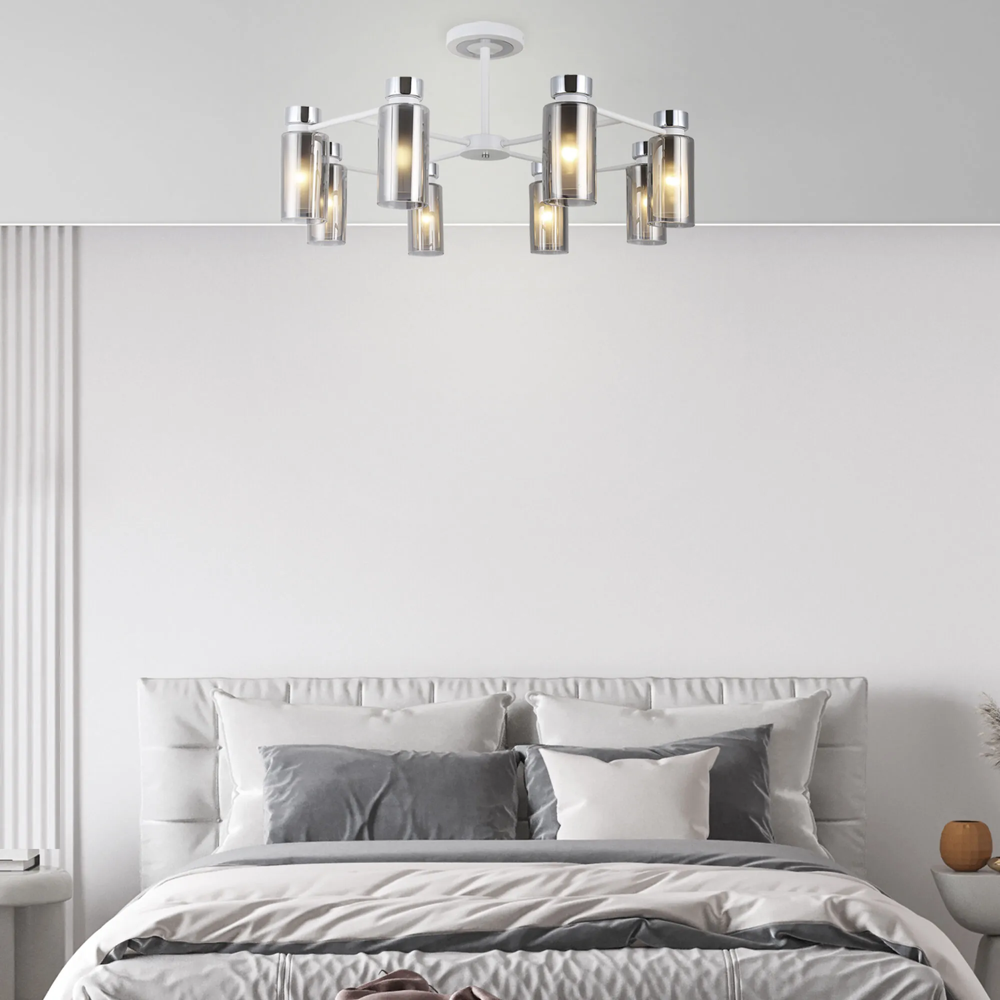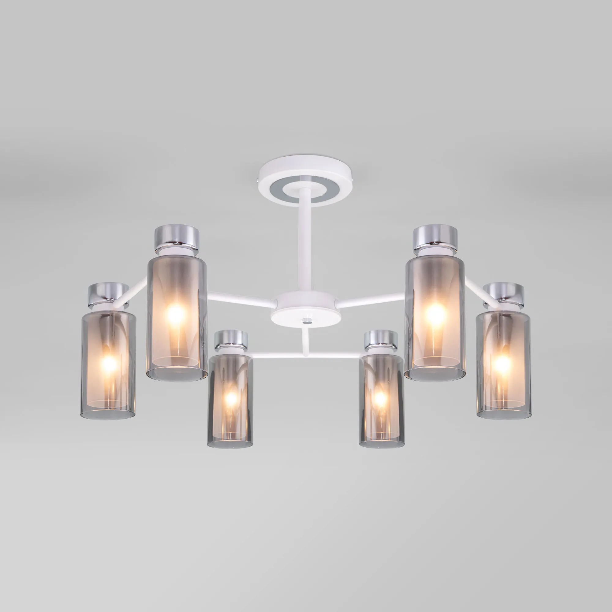 Артикул: 70115/6; Бренд: Eurosvet; Серия: Amado; Стиль: Loft; Контемпорари; Индустриальный; товарная группа: Потолочный светильник; Тип светильника: сменная лампа; Тип светильника по помещению: гостиница;гостиная;кафе;кабинет;спальня; Срок службы, г: 8; Тип крепления: планка; Степень защиты: IP20; Питание: 230 В, 50 Гц; Площадь освещения, м2: 18; Класс электро-безопасности: I; Температурный режим: -10 ... +40; Коэффициент пульсации, %: < 5; Тип ламп: металл; Тип цоколя: E14; Материал: металл;стекло; Материал плафона: стекло, Стекло; Цвет: белый;дымчатый;хром; Цвет каркаса: белый;хром; Цвет плафона: дымчатый, Дымчатый; Умный дом: совместим с умным выключателем;совместим с умным реле; Гарантия, мес: 12; Длина, мм: 690; Ширина, мм: 690; высота: 380; Высота встраиваемой части, мм: 15; Вес упаковки, кг: 3.541; Длина упаковки, см: 33.5; Ширина упаковки, см: 23.4; Высота упаковки, см: 38.1; Объем упаковки, м3: 0.02986659; Штрихкод: 4690389189326
