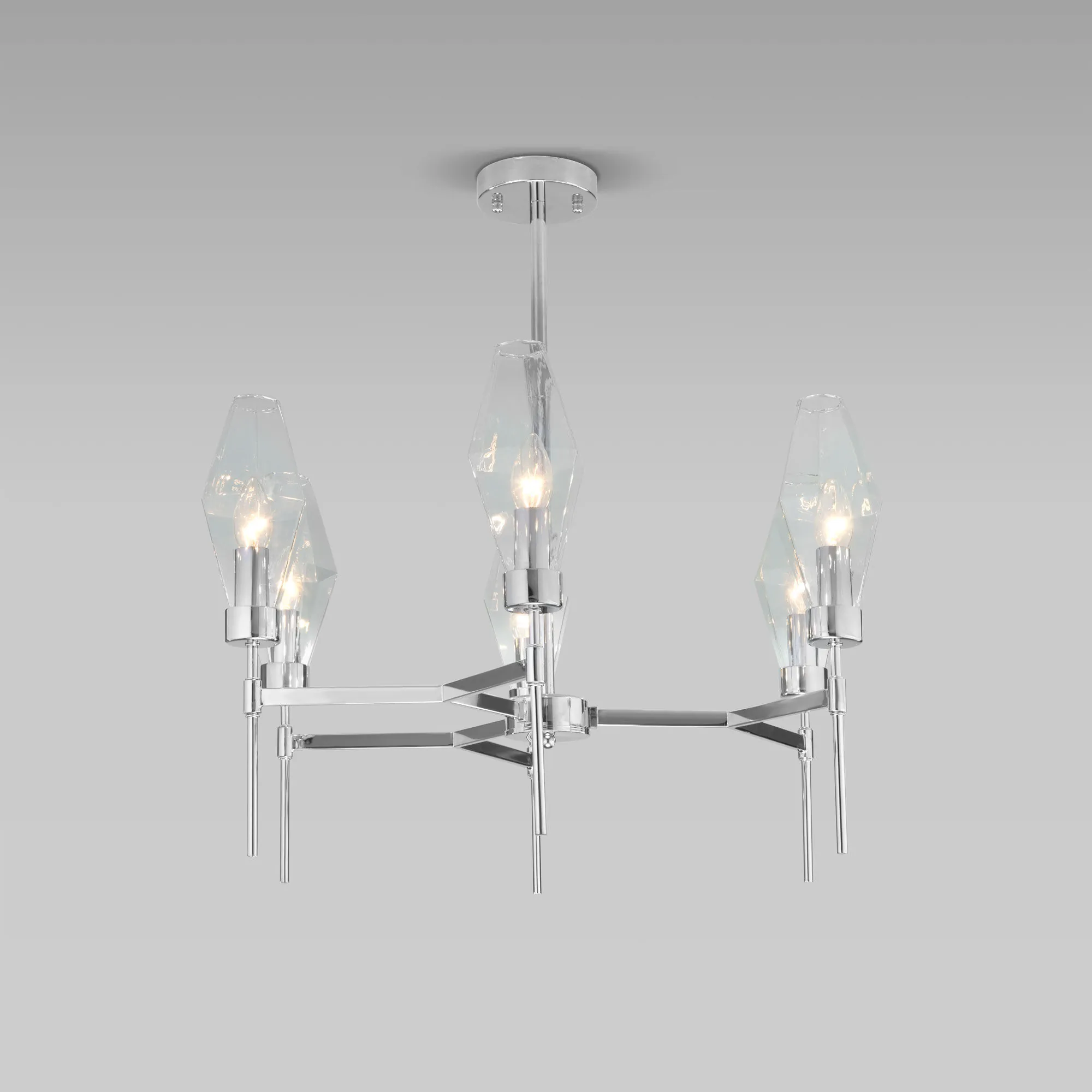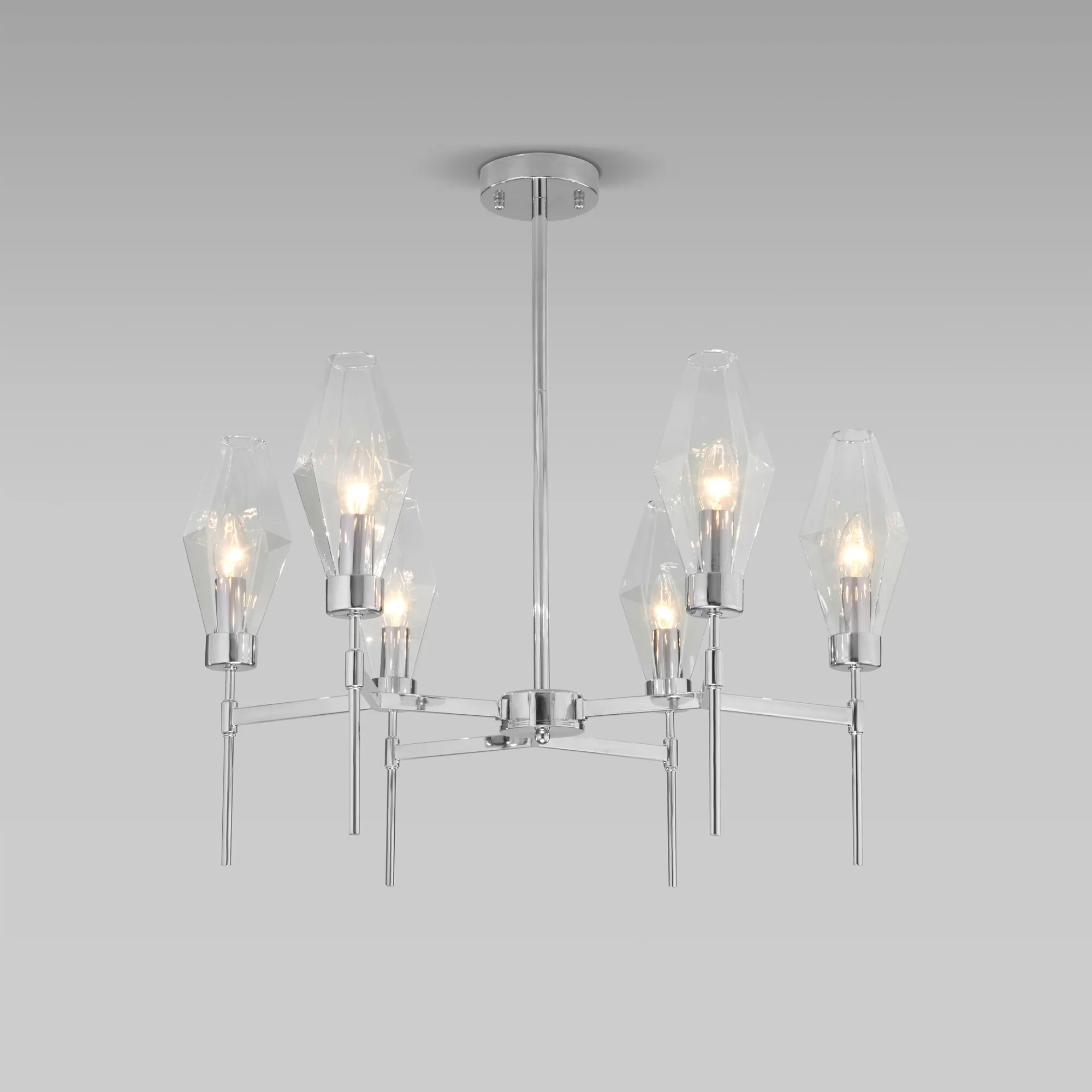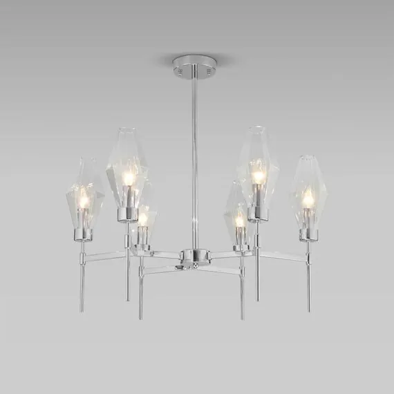 Артикул: 60143/6; Бренд: Eurosvet; Серия: Prism; Стиль: Art Deco; товарная группа: Потолочный светильник; Тип светильника: сменная лампа; Тип светильника по помещению: спальня;гостиная; Срок службы, г: 6; Тип крепления: планка; Степень защиты: IP20; Питание: 230 В, 50 Гц; Площадь освещения, м2: 11; Класс электро-безопасности: I; Температурный режим: -10 ... +40; Тип ламп: металл; Тип цоколя: E14; Материал: металл;стекло; Материал плафона: стекло, Стекло; Цвет: хром;прозрачный; Цвет каркаса: хром, Хром; Цвет плафона: прозрачный, Прозрачный; Умный дом: совместим с умным выключателем;совместим с умным реле; Гарантия, мес: 12; Длина, мм: 700; Ширина, мм: 700; высота: 680; Диаметр потолочной чаши, мм: 100; Высота встраиваемой части, мм: 60; Вес упаковки, кг: 3.694; Длина упаковки, см: 41.9; Ширина упаковки, см: 31; Высота упаковки, см: 46.1; Объем упаковки, м3: 0.05987929; Штрихкод: 4690389191381