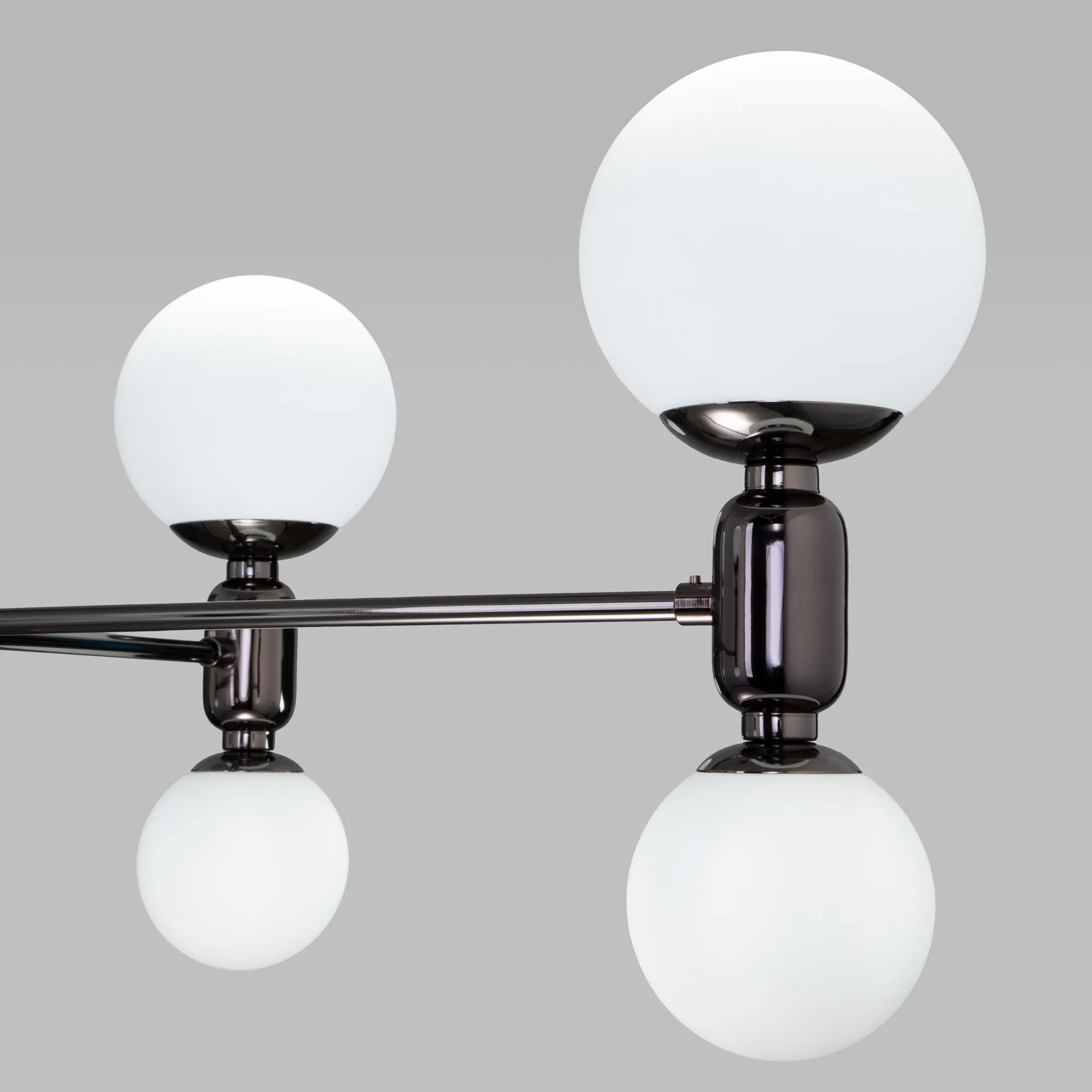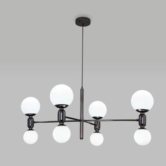 Артикул: 30182/8; Бренд: Eurosvet; Серия: Bubble; Стиль: Art Deco; товарная группа: Потолочный светильник; Тип светильника: сменная лампа; Тип светильника по помещению: гостиная; Срок службы, г: 8; Тип крепления: планка; Степень защиты: IP20; Питание: 230 В, 50 Гц; Площадь освещения, м2: 13; Класс электро-безопасности: I; Температурный режим: -10 ... +40; Тип ламп: металл; Тип цоколя: E27;G9; Материал: металл;стекло; Материал плафона: стекло, Стекло; Цвет: черный жемчуг;белый; Цвет каркаса: Черный жемчуг, чёрный жемчуг, черный жемчуг; Цвет плафона: белый, Белый; Умный дом: совместим с умным выключателем;совместим с умным реле; Гарантия, мес: 12; Длина, мм: 1000; Ширина, мм: 760; Min высота, мм: 440; max высота: 1300; Диаметр потолочной чаши, мм: 120; Высота встраиваемой части, мм: 20; Вес упаковки, кг: 4.243; Длина упаковки, см: 47.9; Ширина упаковки, см: 40.2; Высота упаковки, см: 40.9; Объем упаковки, м3: 0.07875622; Штрихкод: 4690389194870