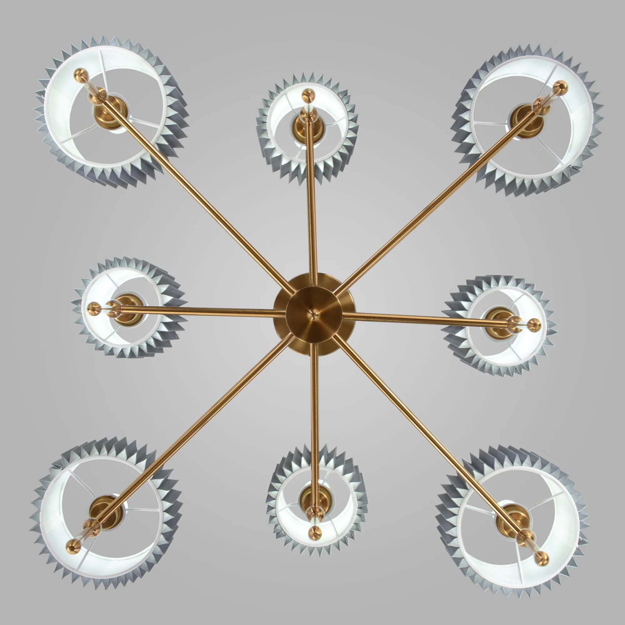 Артикул: 60162/8; Бренд: Eurosvet; Серия: Notturno; Стиль: Classic; товарная группа: Потолочный светильник; Тип светильника: сменная лампа; Тип светильника по помещению: спальня;гостиная; Срок службы, г: 6; Тип крепления: планка; Степень защиты: IP20; Питание: 230 В, 50 Гц; Площадь освещения, м2: 14; Класс электро-безопасности: I; Температурный режим: -10 ... +40; Тип ламп: металл; Тип цоколя: E14; Материал: металл;ткань; Материал плафона: ткань; Цвет: Латунь; Цвет каркаса: латунь, Латунь; Цвет плафона: серый, Серый; Умный дом: совместим с умным выключателем;совместим с умным реле; Гарантия, мес: 12; Длина, мм: 840; Ширина, мм: 840; высота: 640; Диаметр потолочной чаши, мм: 100; Высота встраиваемой части, мм: 40; Вес упаковки, кг: 4.137; Длина упаковки, см: 72.3; Ширина упаковки, см: 28.9; Высота упаковки, см: 26.9; Объем упаковки, м3: 0.05620674; Штрихкод: 4690389202216