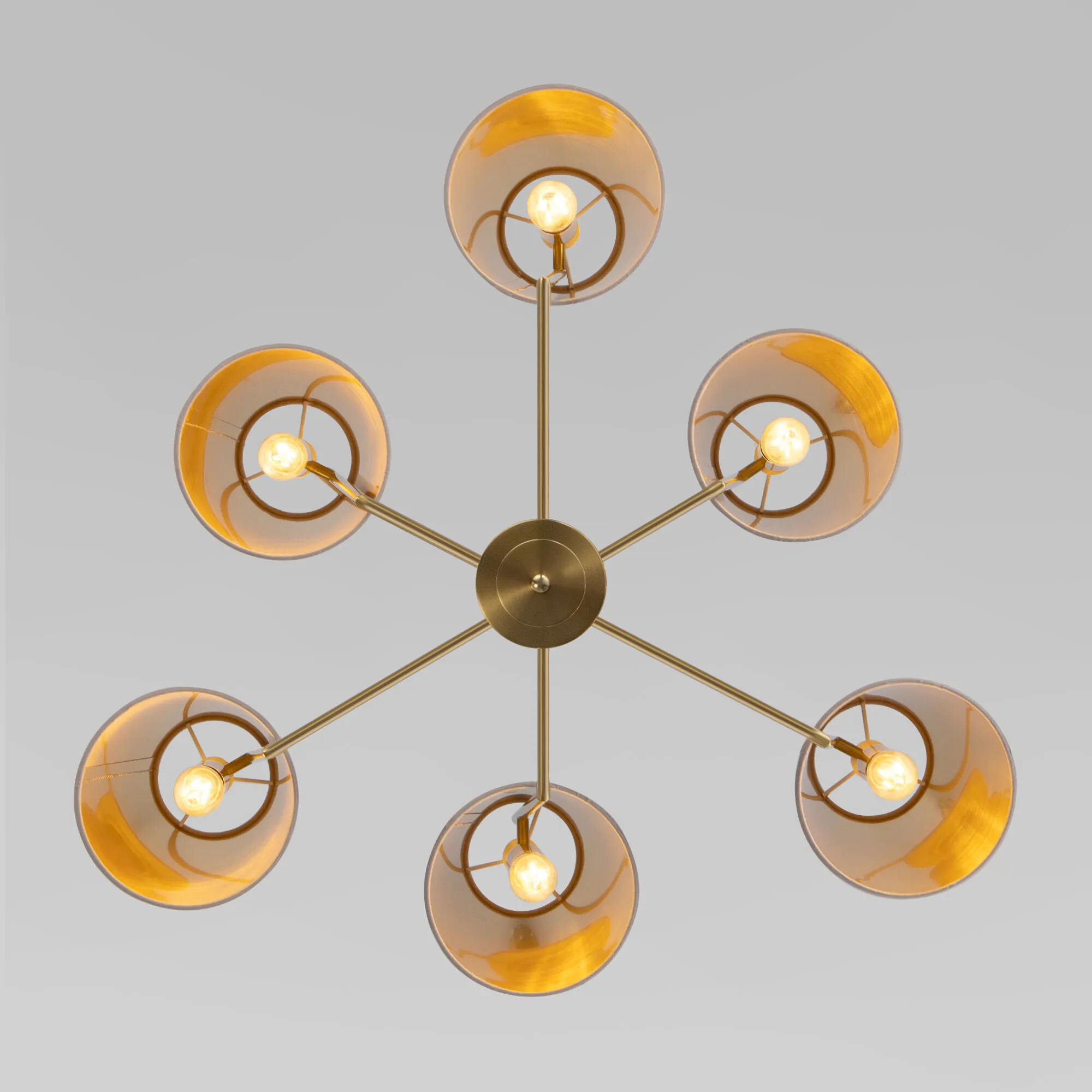 Артикул: 60173/6; Бренд: Eurosvet; Серия: Topanga; Стиль: Art Deco; товарная группа: Потолочный светильник; Тип светильника: сменная лампа; Тип светильника по помещению: спальня;гостиная;кухня; Срок службы, г: 6; Форма: круг; Степень защиты: IP20; Питание: 230 В, 50 Гц; Площадь освещения, м2: 11; Класс электро-безопасности: I; Температурный режим: -10 ... +40; Тип ламп: металл; Тип цоколя: E14; Материал: металл;ткань; Материал плафона: ткань; Цвет: латунь;коричневый; Цвет каркаса: латунь, Латунь; Цвет плафона: серый;золото; Умный дом: совместим с умным выключателем;совместим с умным реле; Гарантия, мес: 12; Длина, мм: 710; Ширина, мм: 710; высота: 630; Диаметр потолочной чаши, мм: 120; Высота встраиваемой части, мм: 40; Вес упаковки, кг: 2; Длина упаковки, см: 20; Ширина упаковки, см: 40; Высота упаковки, см: 30; Объем упаковки, м3: 0.02400000; Штрихкод: 4690389211775