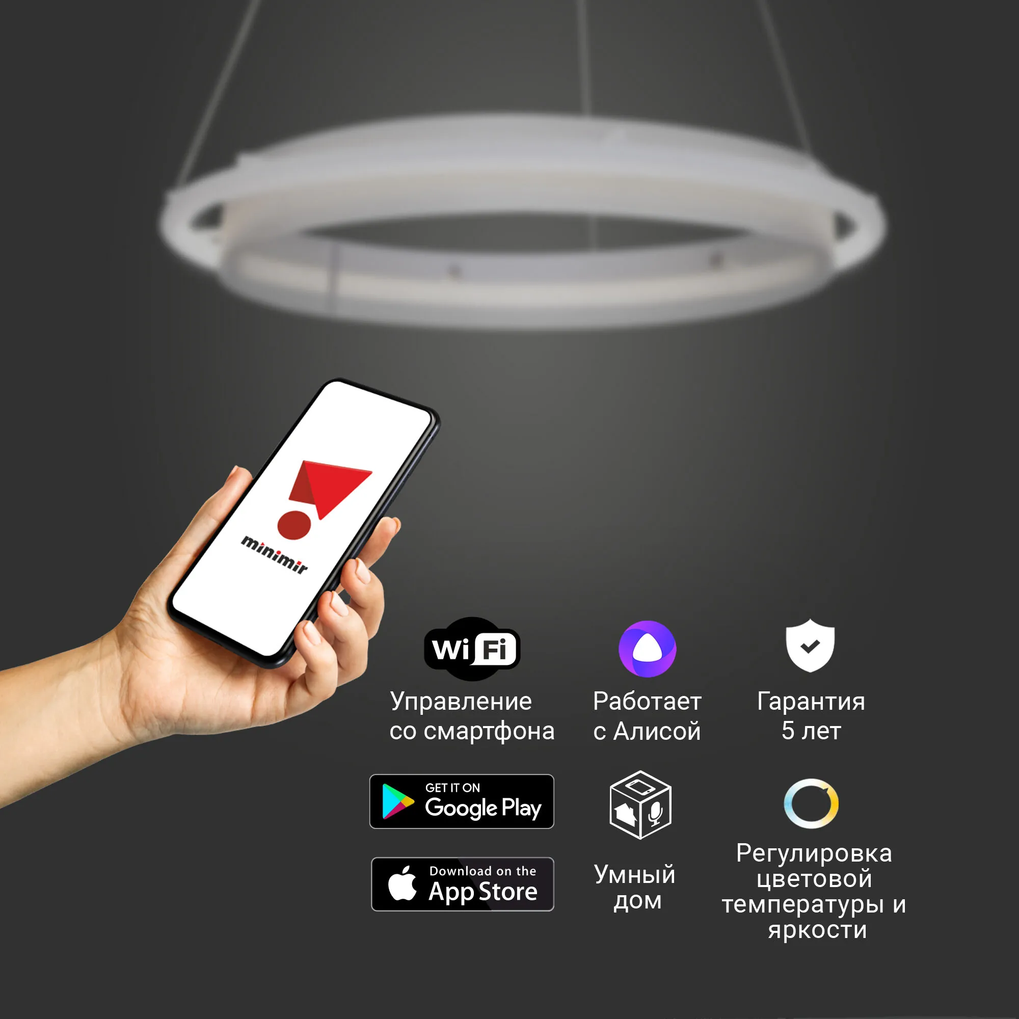 Артикул: 90241/1; Бренд: Eurosvet; Серия: Imperio; Стиль: Minimalism; High-tech; Функционализм; товарная группа: Подвесной светильник; Тип светильника: встроенные LED; Тип светильника по помещению: гостиница;гостиная;загородный дом;офис;кабинет;кафе;кухня;спальня; Срок службы, г: 6; Тип крепления: планка; Степень защиты: IP20; Общая мощность, W: 53; Питание: 230 В, 50 Гц; Площадь освещения, м2: 9; Класс электро-безопасности: I; Температурный режим: -10 ... +40; Коэффициент пульсации, %: < 5; Кол-во светодиодов: 360; Тип ламп: металл; Тип светодиодов: SMD;светодиодная лента; Световой поток, Lm: 3498; Цветовая температура, K: 3300;4200;6500; Индекс цветопередачи: > 80; Срок службы светодиодов, ч: 50000; Материал: Металл; Цвет: белый;серебро; Цвет каркаса: белый;серебро; Умный дом: встроен; Гарантия, мес: 60; Длина, мм: 590; Ширина, мм: 590; Min высота, мм: 200; max высота: 1500; Диаметр потолочной чаши, мм: 180; Вес упаковки, кг: 3.212; Длина упаковки, см: 66.5; Ширина упаковки, см: 65.8; Высота упаковки, см: 16.3; Объем упаковки, м3: 0.07132391; Штрихкод: 4690389170874