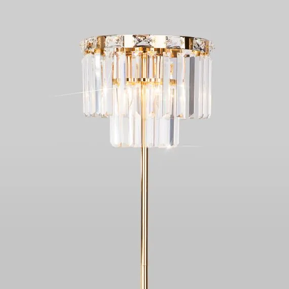 Артикул: 01137/3; Бренд: Eurosvet; Серия: Elegante; Стиль: классика; товарная группа: напольный светильник; Тип светильника: сменная лампа; Тип светильника по помещению: спальня;гостиная;гостиница; Срок службы, г: 8; Степень защиты: IP20; Питание: 230 В, 50 Гц; Площадь освещения, м2: 5; Класс электро-безопасности: II; Температурный режим: -10 ... +40; Тип ламп: металл; Тип цоколя: E14; Материал: металл;хрусталь; Материал плафона: хрусталь; Цвет: прозрачный;золото; Цвет каркаса: золото, Золото; Цвет плафона: прозрачный, Прозрачный; Умный дом: совместим с умной розеткой; Гарантия, мес: 12; Длина, мм: 300; Ширина, мм: 300; высота: 1650; Высота встраиваемой части, мм: 60; Вес упаковки, кг: 8.575; Длина упаковки, см: 55.6; Ширина упаковки, см: 35.4; Высота упаковки, см: 22.9; Объем упаковки, м3: 0.04507270; Штрихкод: 4690389187049